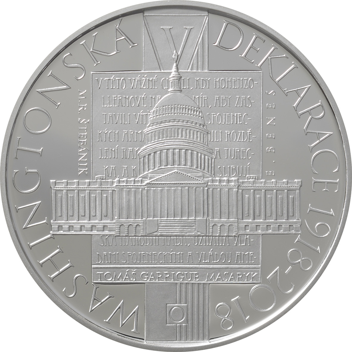Česká národní banka připomněla 100. výročí vzniku republiky několika emisemi mincí, a to jak pamětních, tak oběžných. Blížící se výročí předznamenala dne 17. října 2018 emise stříbrné pamětní mince Washingtonská deklarace připomínající 100. výročí Prohlášení nezávislosti československého národa. O týden později, 23. října 2018, se uskutečnila mimořádná emise zlaté pamětní mince připomínající 100. výročí založení československého státu. Poté 24. října 2018 začala ČNB distribuovat speciální sadu oběžných dvacetikorun s portréty zakladatelů státu - Tomáše Garrigua Masaryka, Milana Rastislava Štefánika a Edvarda Beneše.
