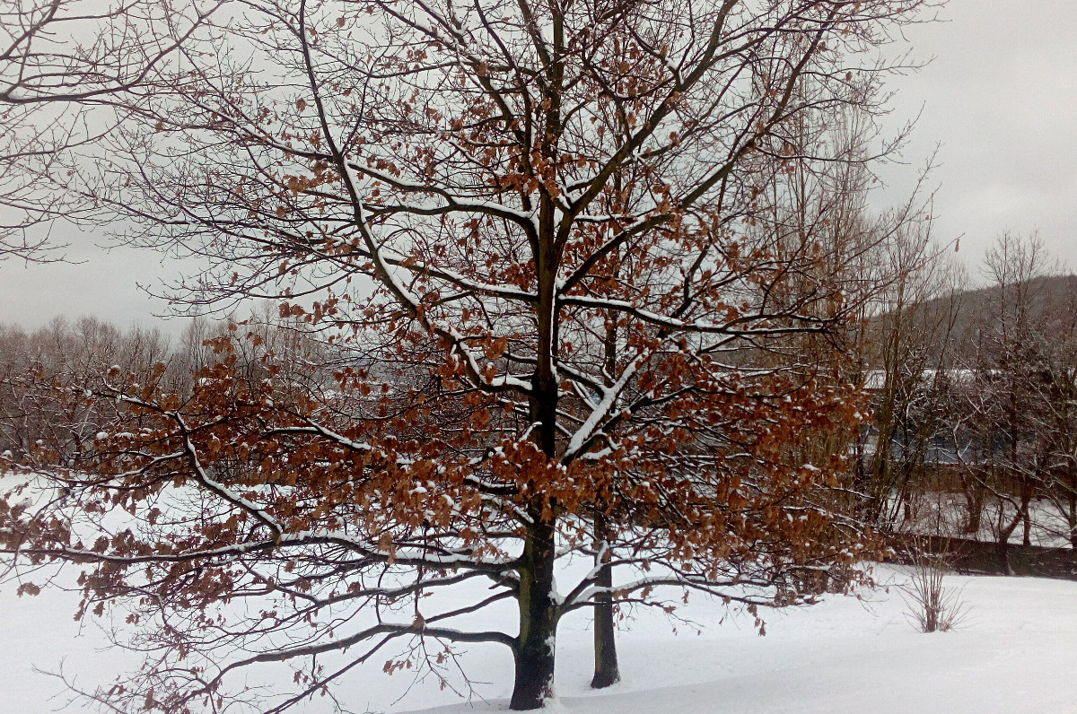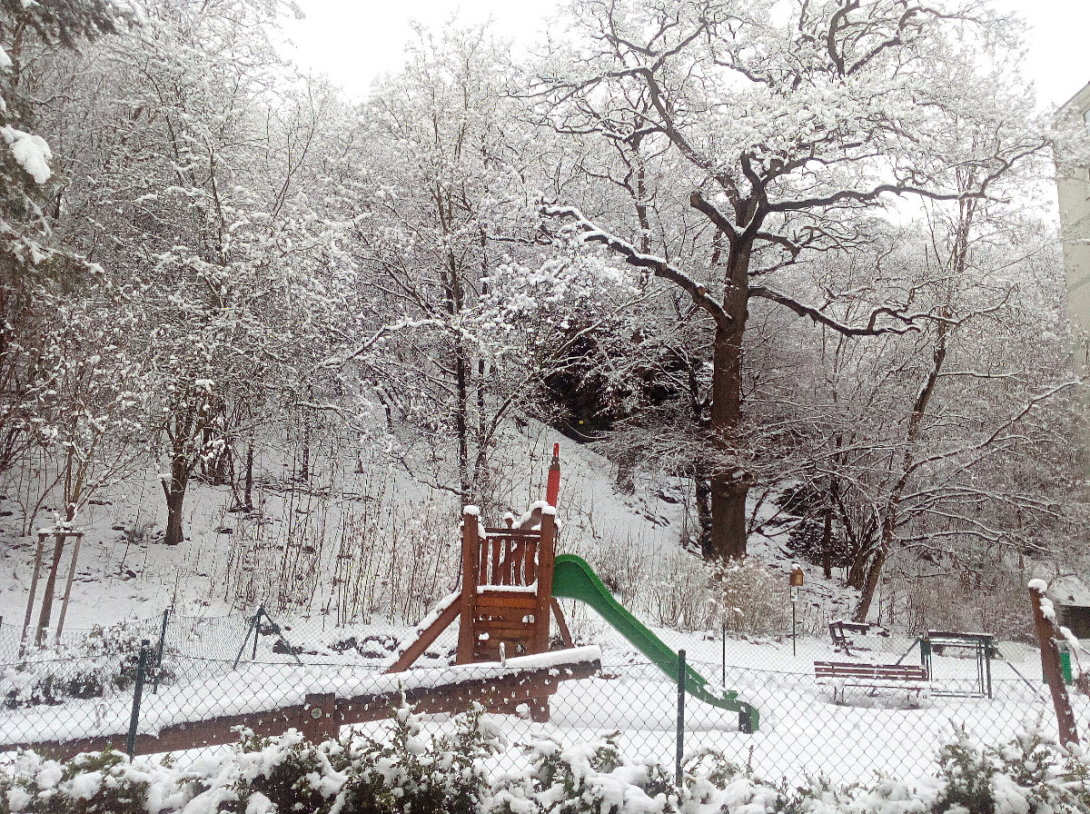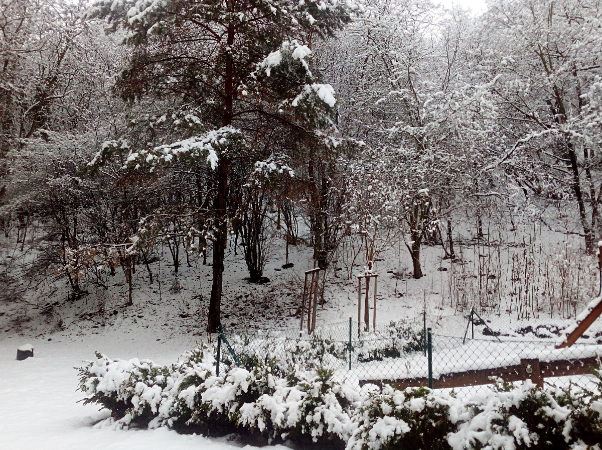 Je neděle, my jsme po obědě, vnučka si pustila v TV Déčko, na stole se kouří z kafíčka, prostě siesta. Venku od rána sněží, všechno je krásně bílé, zanechám rodinu jejich lenošení, beru do ruky foťák a konečně i já jdu ulovit nějaké ty zimní fotky, než mi to všechno opět zmizí.