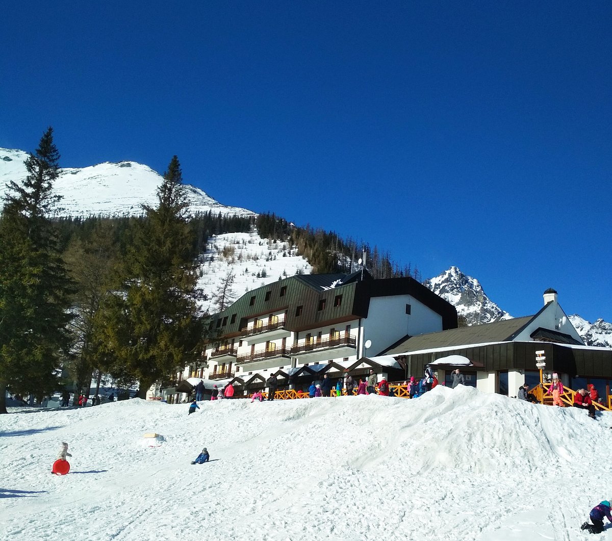 V Popradu nás přivítalo nádherné počasí, azurová obloha bez mráčku a slunečno. Tak krásné počasí jsem tam již dlouho nezažila. Celé Tatry jsem měla, již v Popradu při čekání na električku, jako na dlani. Ve Smokovci bylo 9°C a na Hrebienku 3°C a spoustu sněhu.