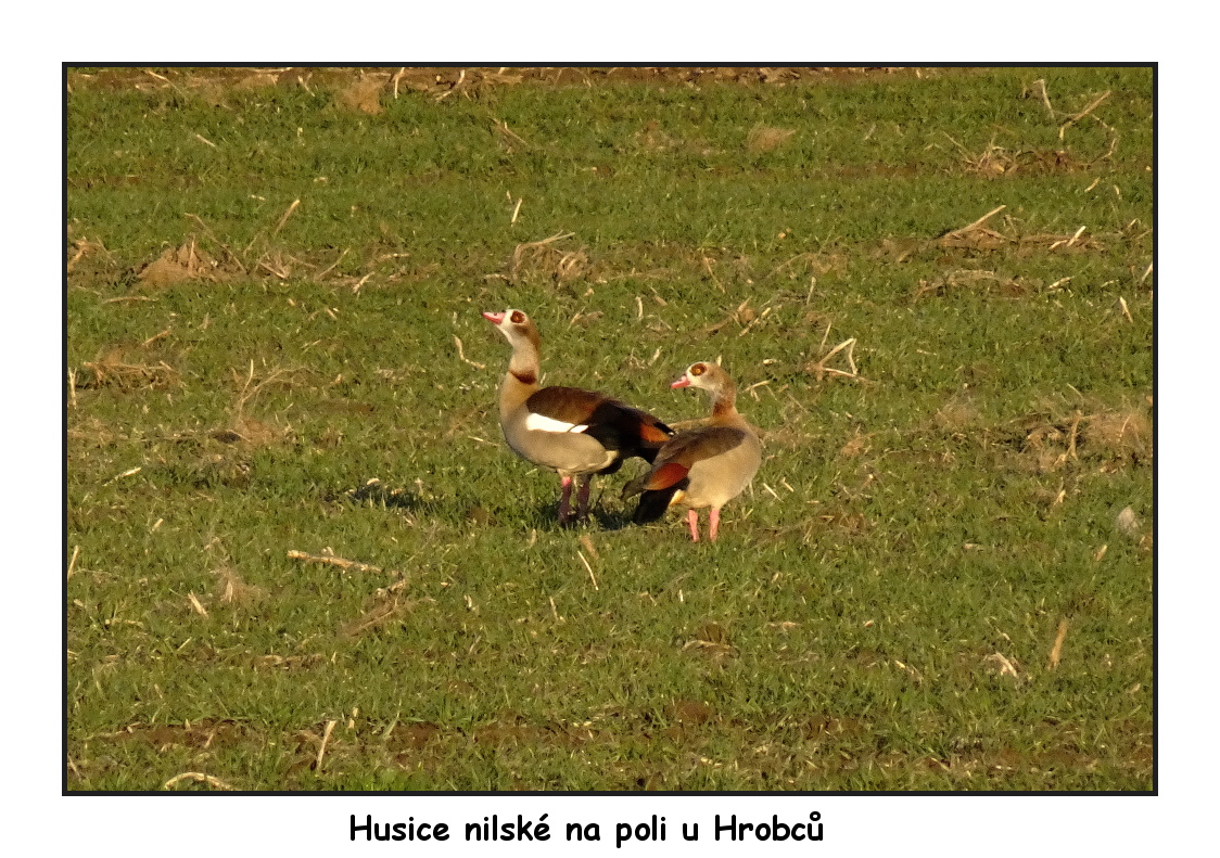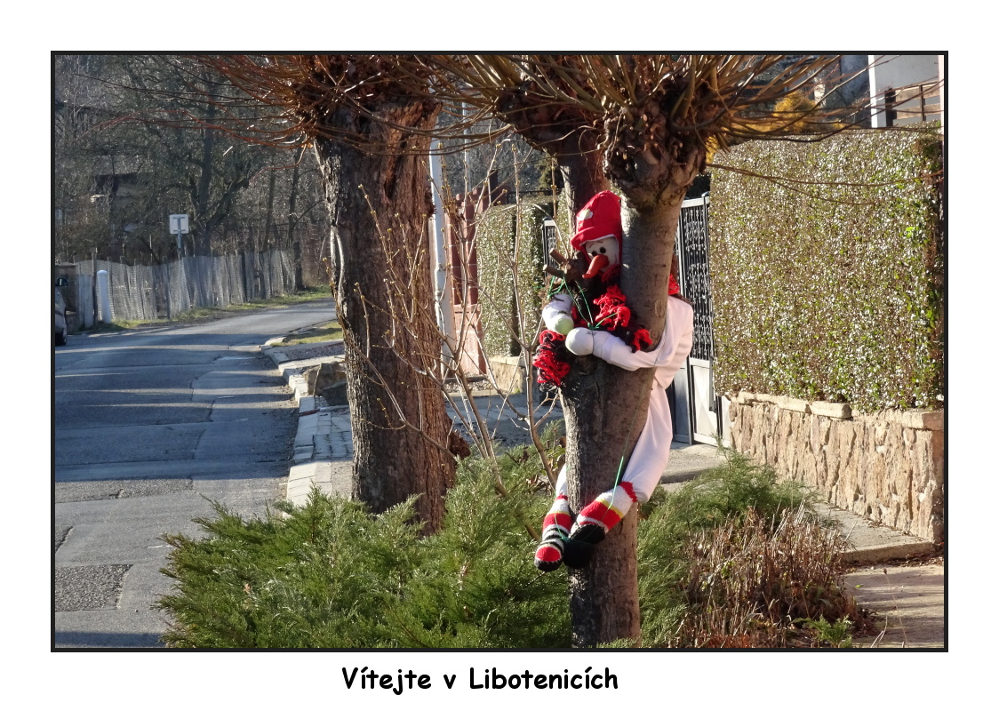 Libotenice leží na labském břehu a patří k vesnicím, silně postiženým povodněmi z roku 2002 i 2013. Vám, kdo čtete moje příspěvky, nejsou neznámé. V obci sídlí Podřipská Asociace malířek a malí­řů kraslic České republiky a já jsem vás s tímto místem seznámila už před třemi lety prostřednictvím galerie kraslic (Galerie kraslic v Libotenicích ), kterou tu mají a každé dva roky pořádají velkou velikonoční výstavu. Kraslici tam má uloženou např. i Dana Zátopková. Letos výstava vynechává, leč po domluvě můžete galerii navštívit. Kromě galerie kraslic tahle malá obec má ještě jinou zajímavost, a tou je barokní kostel sv. Kateřiny z roku 1703.  Ze silnice kostel se samostatně stojící zvonicí nemůžete přehlédnout. Je připisován litoměřickému staviteli Octaviu Broggiovi. Po válce byl opuštěn, mobiliář zmizel a byl ponechán napospas vandalům. V roce 1992 se začalo s jeho opravou. Dnes se v něm konají příležitostné koncerty, výstavy apod. Jednou se mi poštěstilo podívat se dovnitř, dnes je však zavřený. Na fotografii si všimněte rysky, vyznačující hladinu vody při povodni z roku 2002. Jinak Libotenice patří k typickým zemědělským obcím kraje "zahrady Čech" s pěstováním zeleniny a chmele. Na návsi mají půvabnou barokní kapličku a při pohledu ze strany od Labe jsem si všimla na venkovskou obec zajímavě vyzdobeného domu. Jestli dáváte přednost vajíčkům z výhradně českých chovů, tak je možné, že si pochutnáváte na omeletách ze zdejšího velkochovu. A teď už zbývá jen vydat se do cíle mého výletu, Hrobců. Cestou jsem na poli viděla párek husic nilských, popásajících se na budoucí úrodě obilí. Hrobce jsou další vesnicí na železniční trati, a pokud byste se vydali na výlet vlakem jako já, nastoupíte tu zase do vlaku a vrátíte se domů, obohaceni zážitky z pěkné krajiny při nenáročné vycházce. V nohách máte asi 7 km.