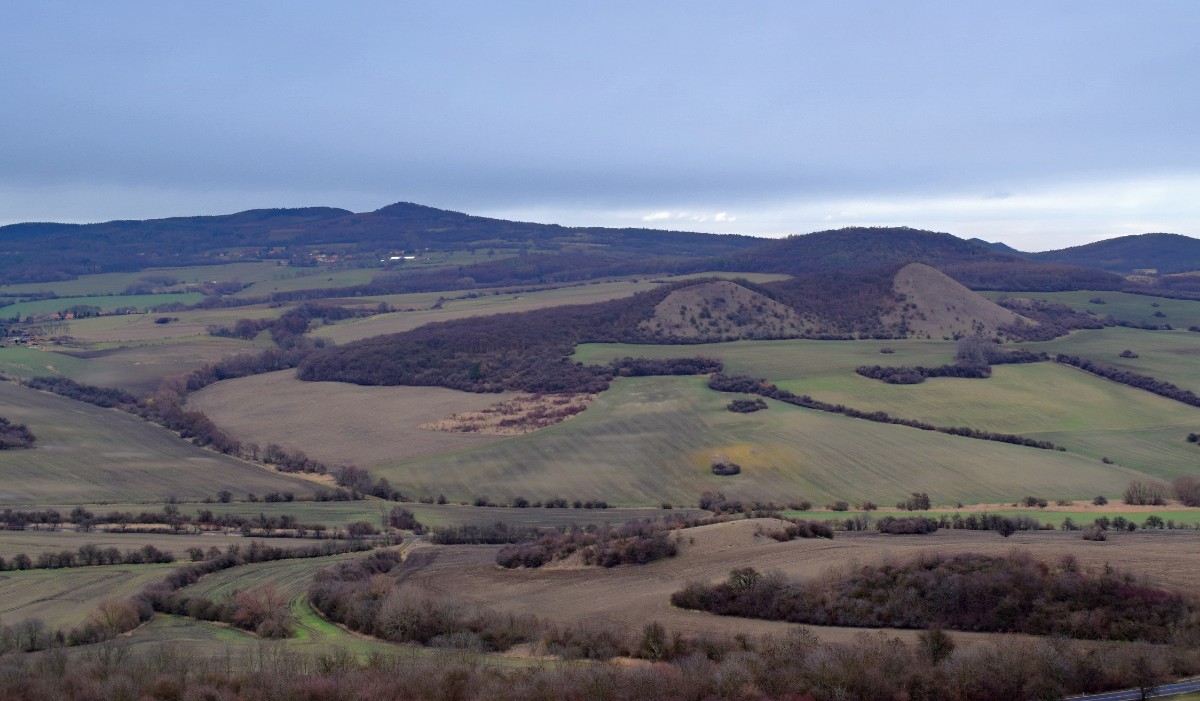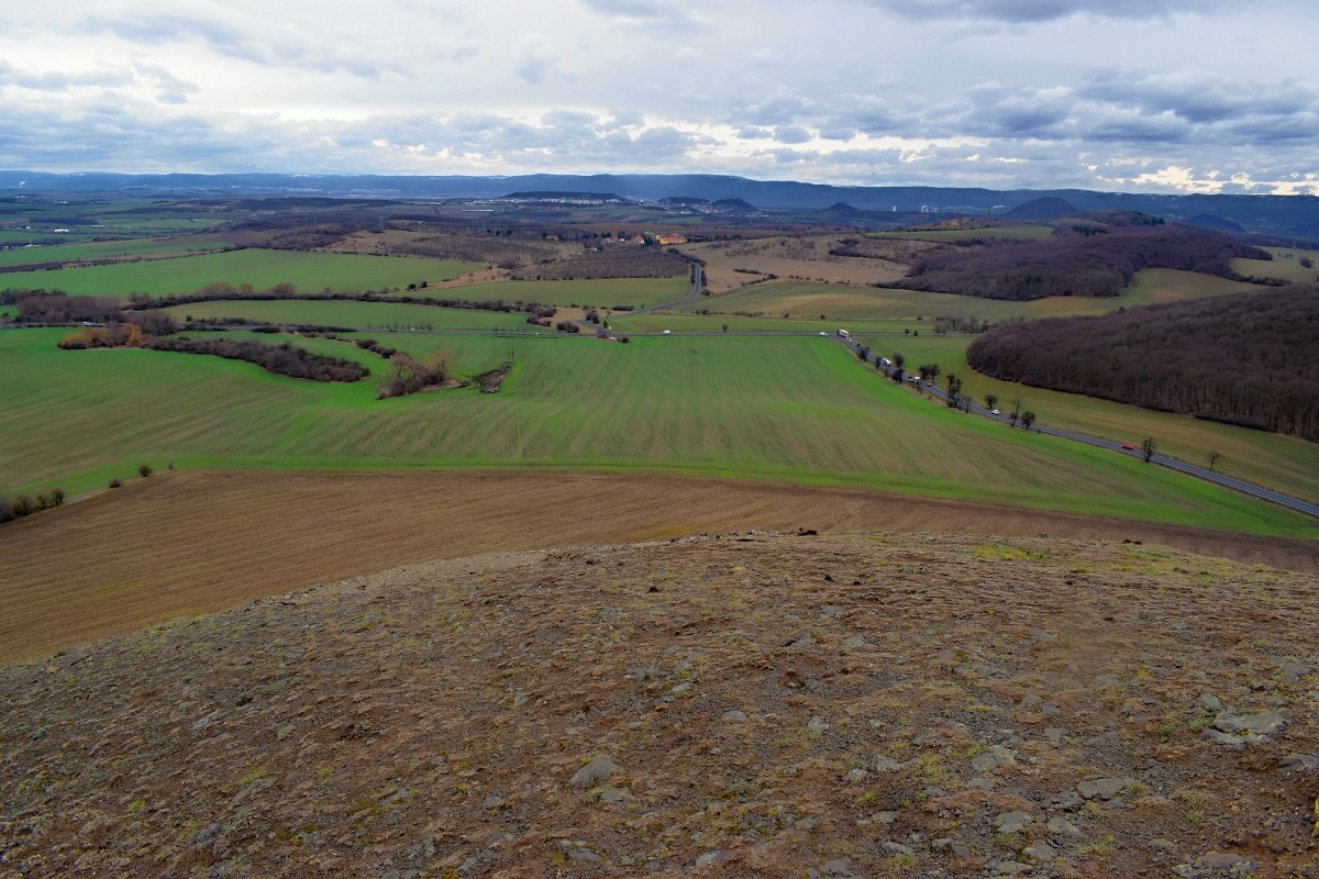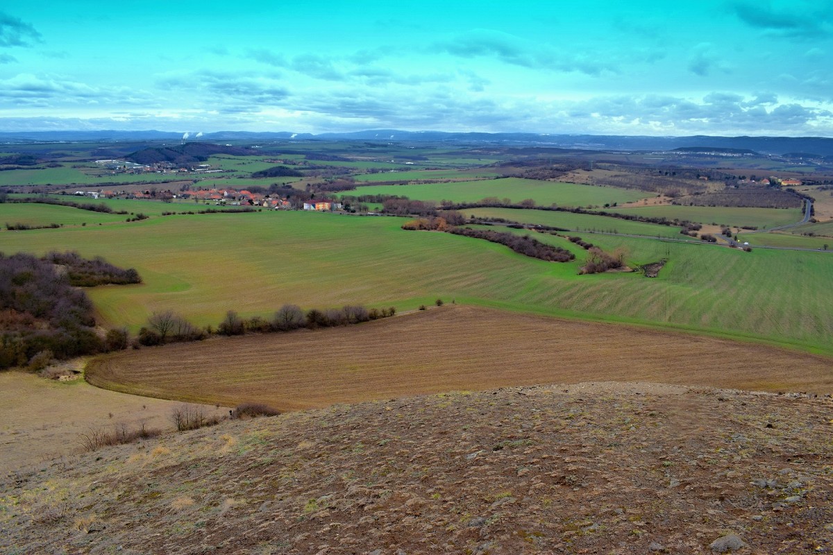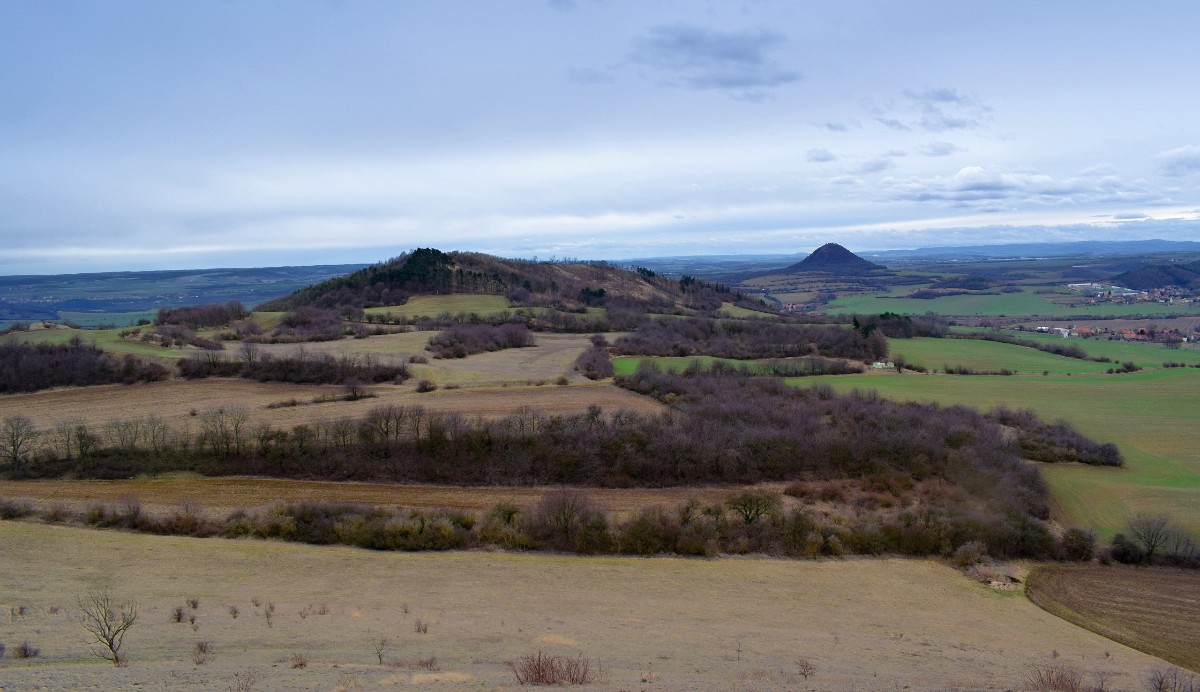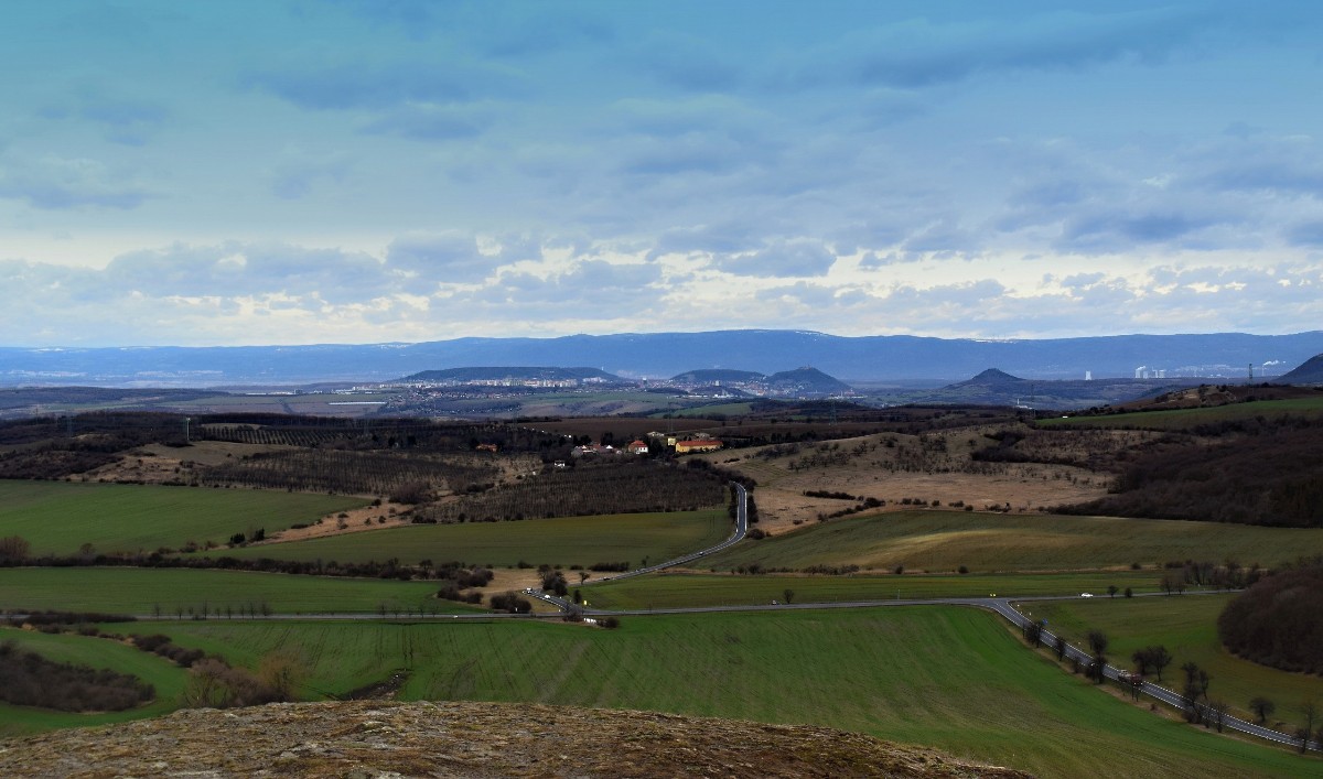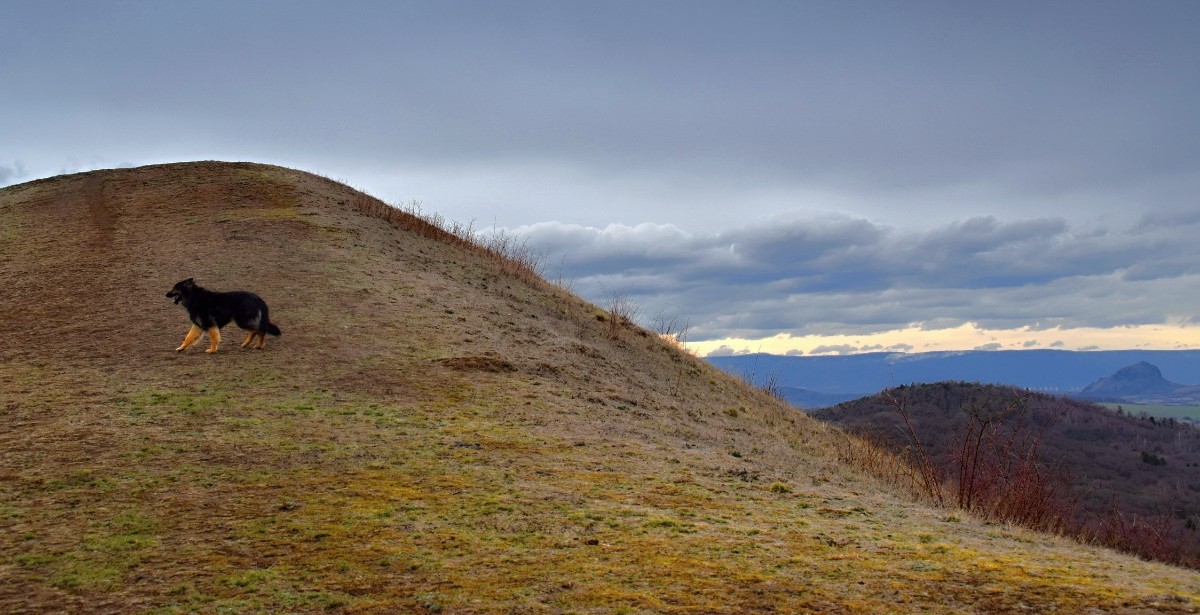 Sice nebylo slunečno, ale vítr napomohl poměrně jasnému výhledu, až ke Krušným Horám a zčásti na Bílinsko, takže i nějaké fotky vznikly. Mystinka byla šťastný pes a já šťastný člověk, v čerstvém povětří. No, není to hezký život na penzi?