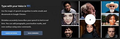 Uprostřed obličejů je šipka do návodu na youtube (4 min). Klepneme na tlačítko Launch Dictation.