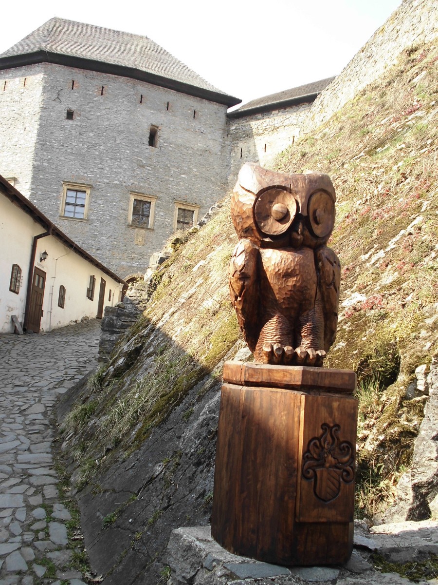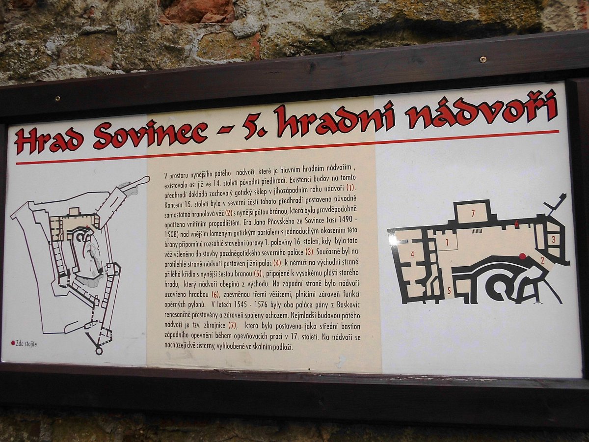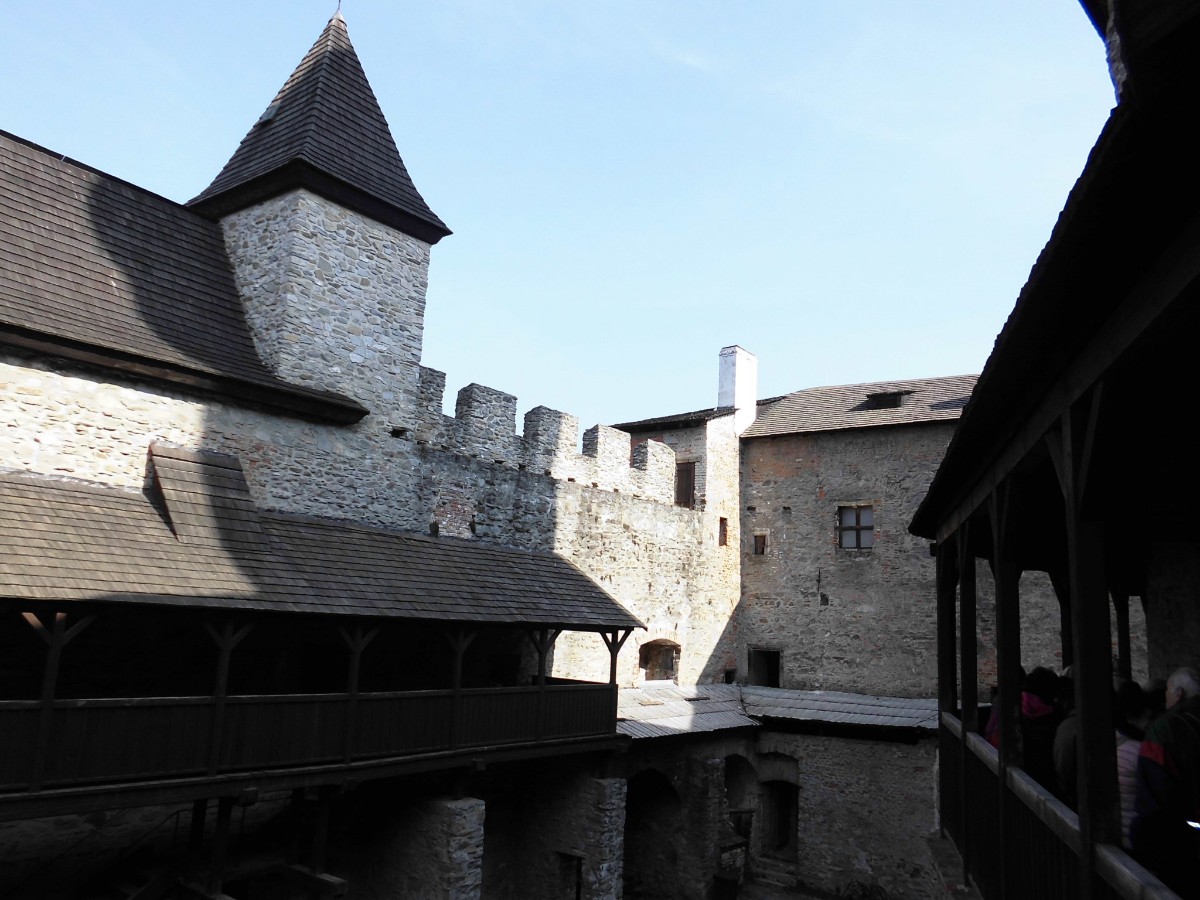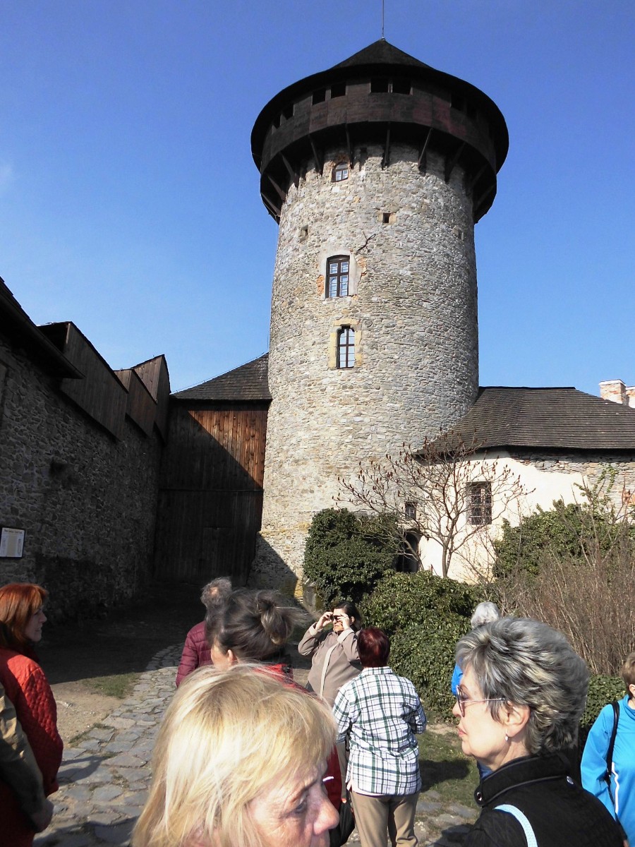 Naše kroky vedou ke stejně se jmenujícímu hradu. Zaplacení vstupného, zakoupení turistických známek i jiných drobností, nutná razítka do turistických sešitků, nezbytné prozkoumání sociálního zařízení a, nožičky, dejte se do ne zrovna pohodlné chůze. Kráčíme na páté nádvoří, kam nás nasměrovala pokladní. Po chvíli přichází průvodce, prohlídka začíná  a my pozorně posloucháme.