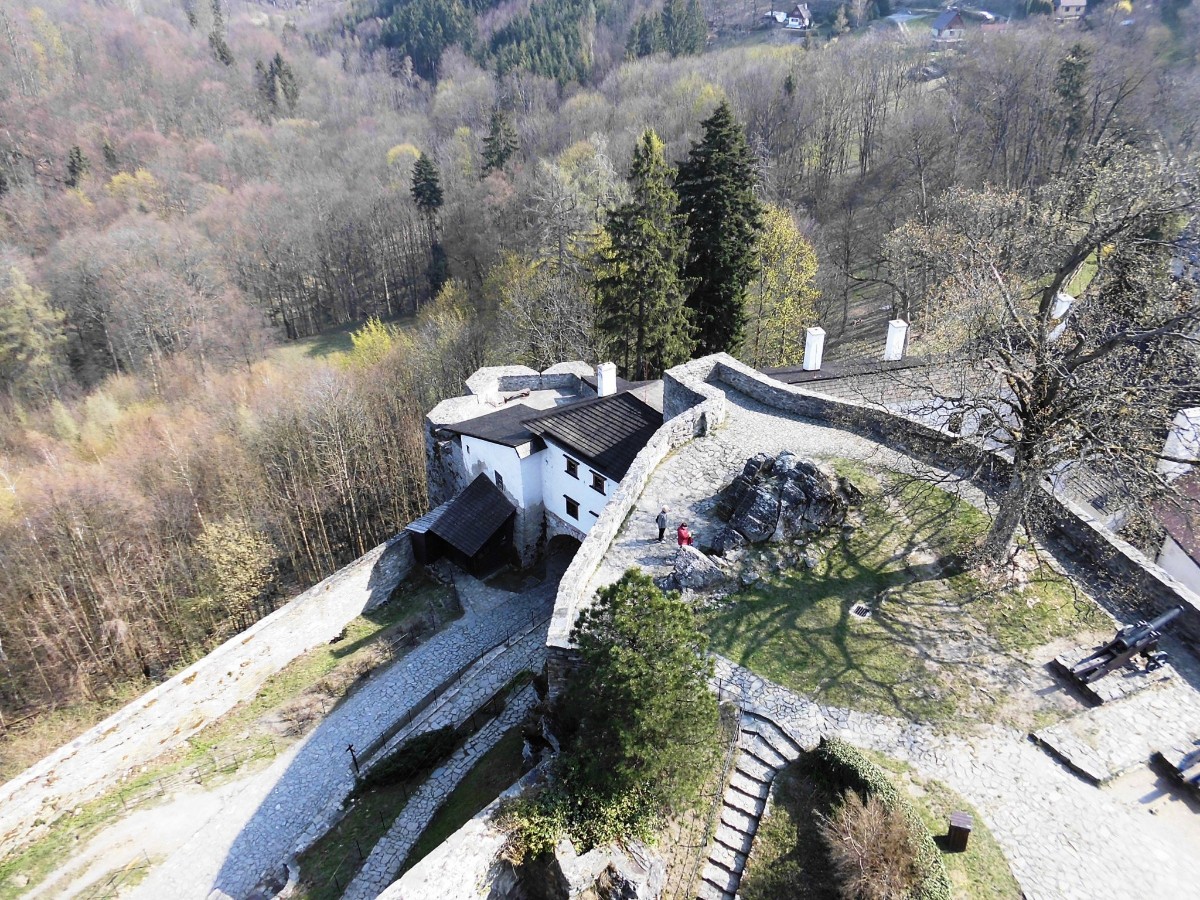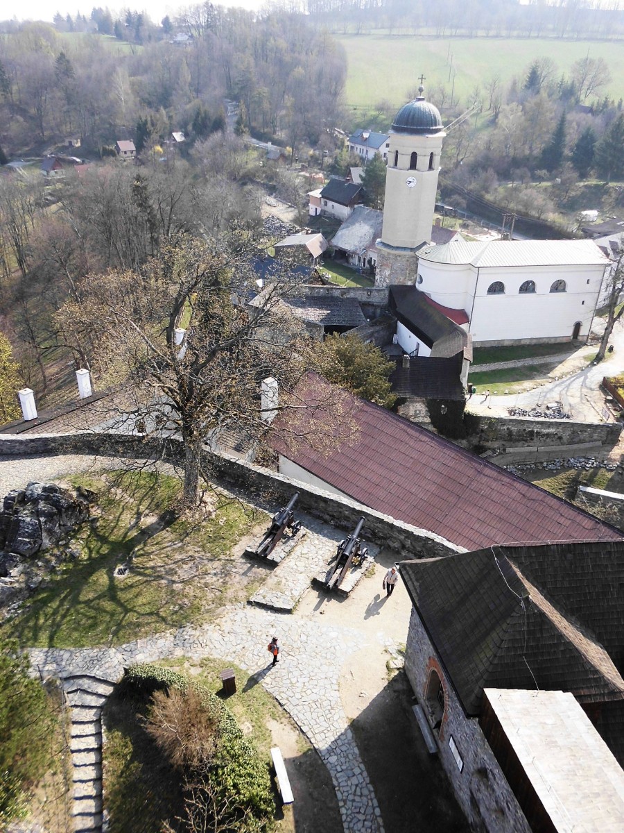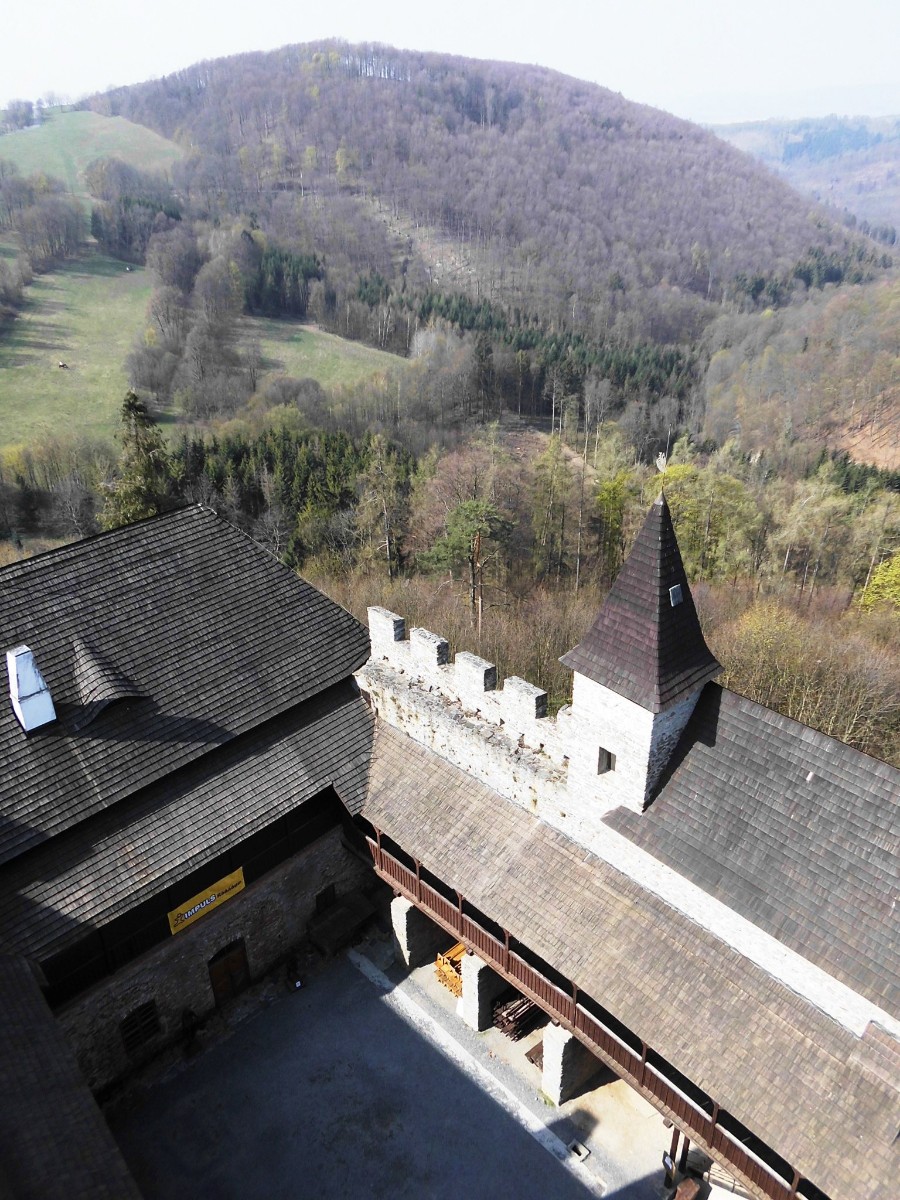 Ozdobou hradu je věž. Vede do ní 8 kamenných a 95 dřevěných schodů. Někteří tento výstup z pochopitelných důvodů vzdávají, raději se jdou ohřát horkým čajem, kávou či svařákem.