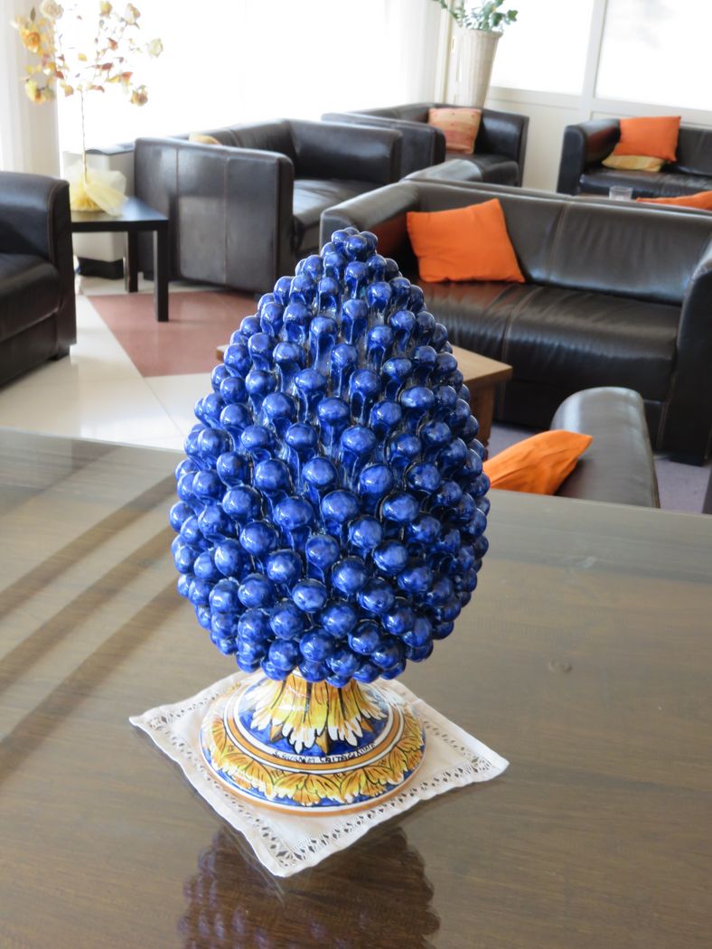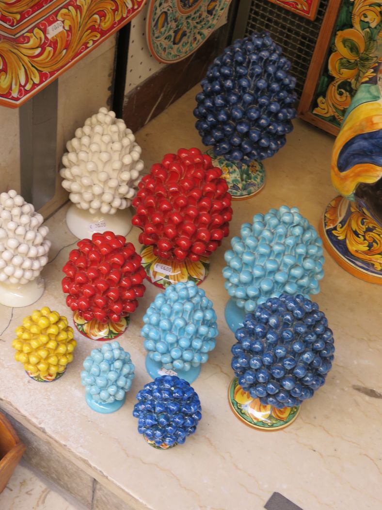 Na našich cestách po Středomoří, hlavně tedy v Itálii, ale i Řecku, jsme se setkávali se zvláštním symbolem provedeným v keramice. Byl hlavně u vstupních bran či dveří vil nebo zahrad, na Sicílii jsem ho viděla i jako ozdobu v hotelové hale a potom v krámcích s keramikou, a to ve všech možných barvách. Vypadalo to na první pohled jako hrozen vína, ale rostoucí nahoru.