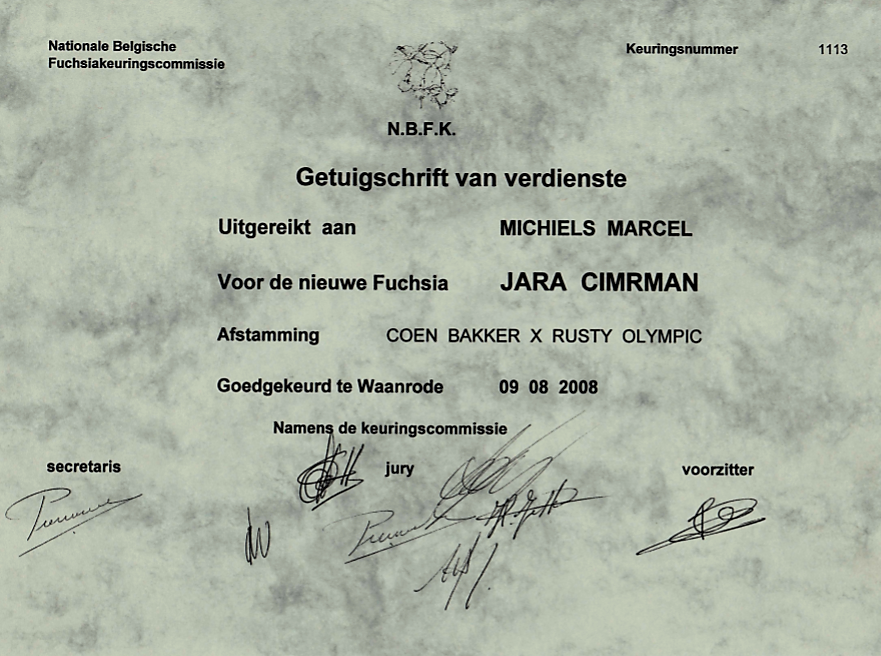 Není to však jen Jára Cimrman, který dal jméno fuchsiím. Další dvě odrůdy byly poctěny českými jmény – Jizerské ticho a Liberec. I ty byly pokřtěny v létě 2009. Odrůdě Jizerské ticho slavnostně dal jméno spisovatel, autor knihy Malé Jizerské ticho, Jan Suchl a odrůdě Liberec primátor tohoto města, Jiří Kittner. Ten, kdo má zásluhu na faktu, že mají další fuchsie česká jména, je Jiří Pevný z Liberce. Jeho sbírka čítající přes 1300 odrůd a druhů fuchsií a více než čtyři stovky pelargonií se stala vzorem a též i zdrojem odrůd pro další sbírky pěstitelů fuchsií v Čechách. Navíc u něho můžete vidět i sbírku „honzíků“ a streptokarpusů.