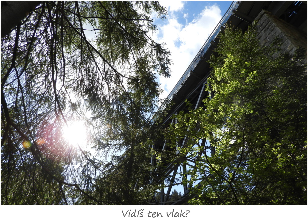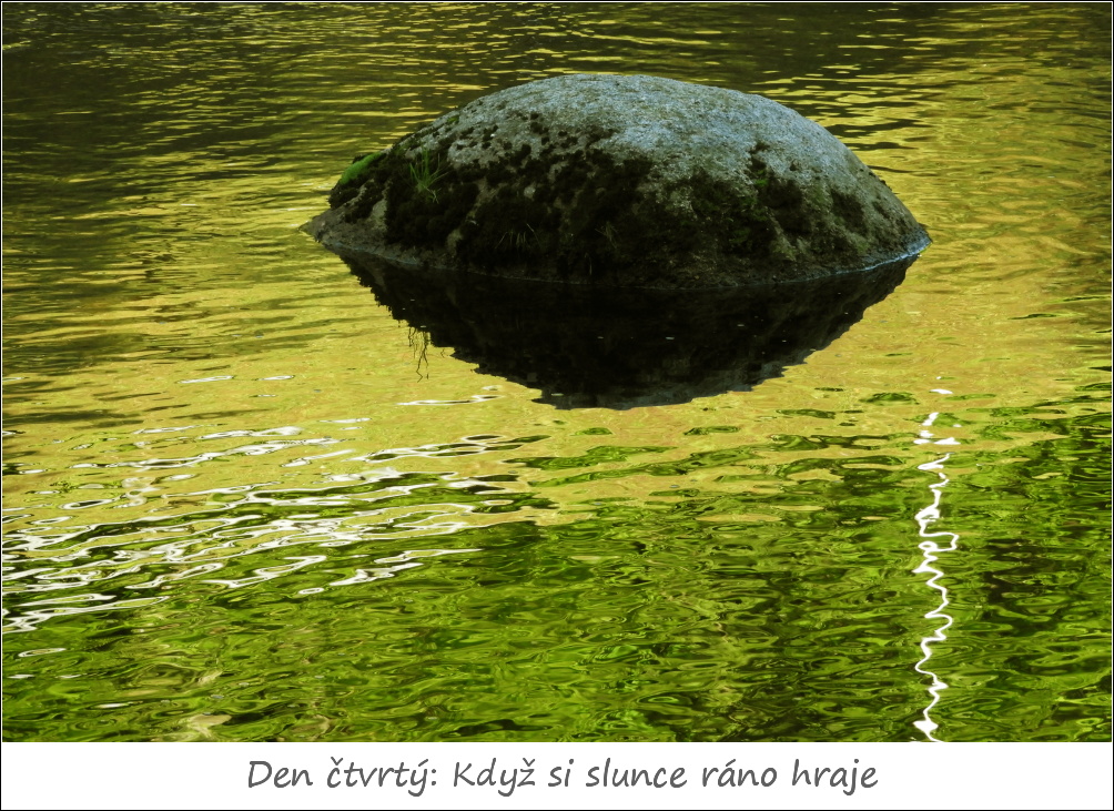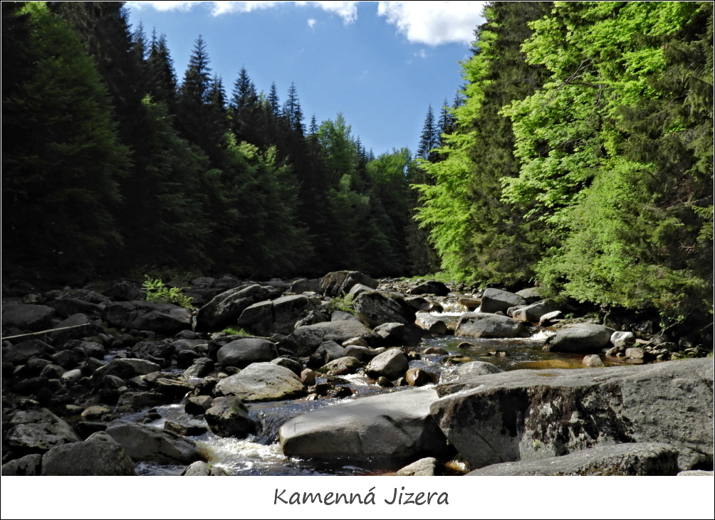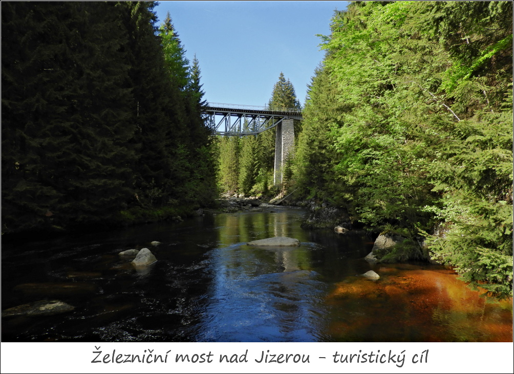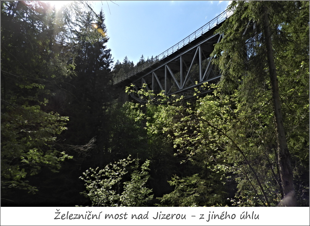 Odpoledne jsme se vydali na různé obhlídky terénu. My (Zdenka, Honza, Elena) jsme šli kolem Jizery k věhlasnému železničnímu mostu. Nevěřícně jsme zírali na kamennou řeku. Nádhera. Voda v ní se jen tak ploužila, cákala po kamenech a laskala se s nimi. Nedovedu si představit, jak Jizera burácí a vyvádí při velké vodě.
