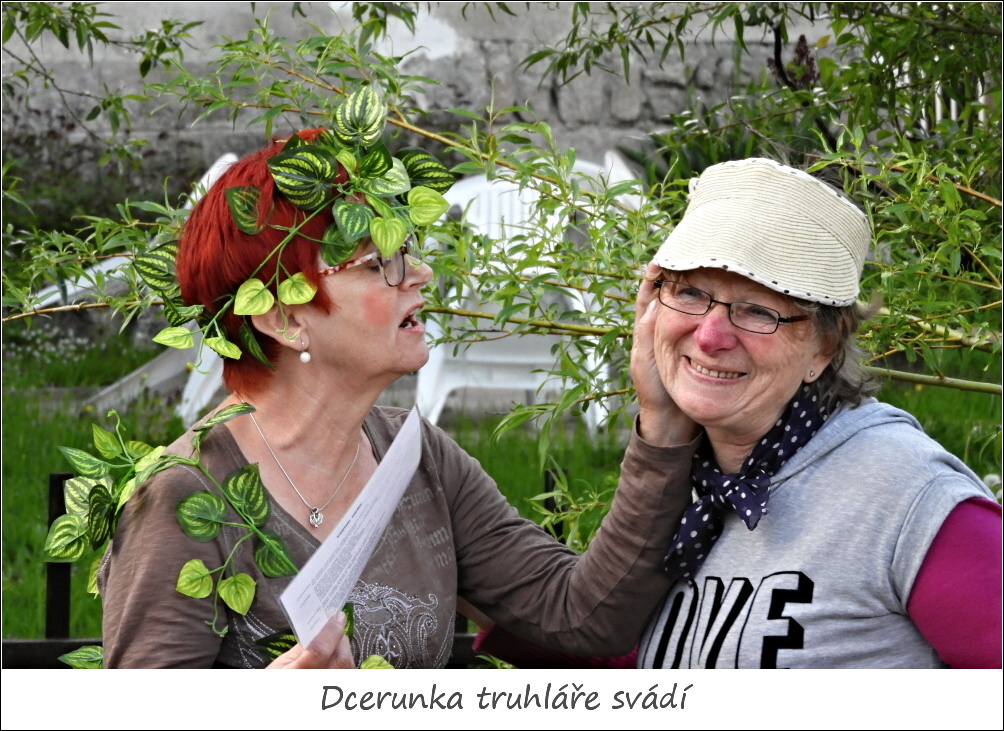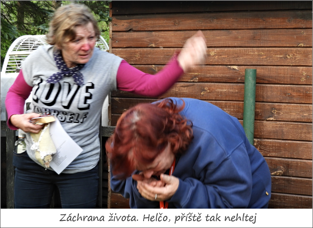 Po večeři nás čekalo uvítací představení ochotnického divadla. Herci hráli s obdivuhodným nasazením a někteří diváci, nebudu jmenovat (HČ), divadlo prožívali tak, že málem přišli o život. No vždyť jo, říkám málem!