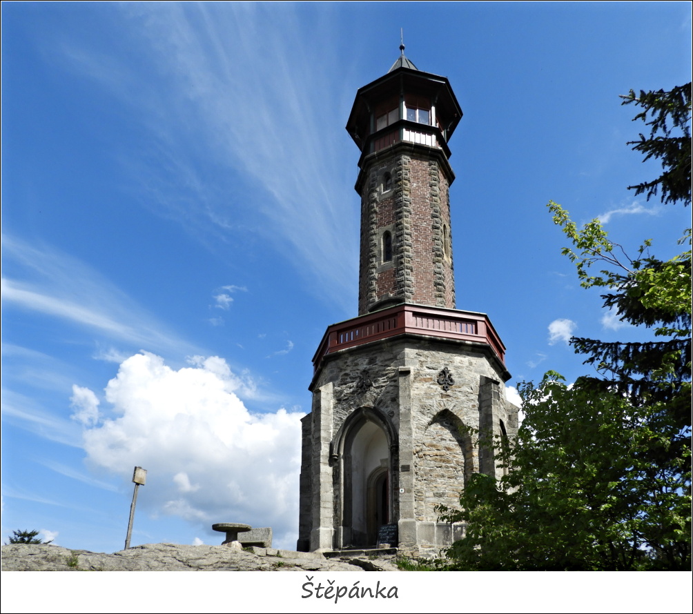 Výšlap na Štěpánku. Rozhledna Štěpánka je kráska, která se hrdě dívá na kraj pod sebou. V dálce můžete vidět Ještěd, překrásný viadukt (tuším v Tanvaldu), přehradu Souš a vesničky rozeseté po kraji jako korálky.