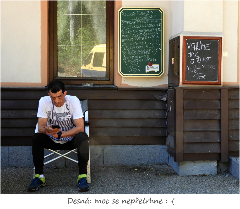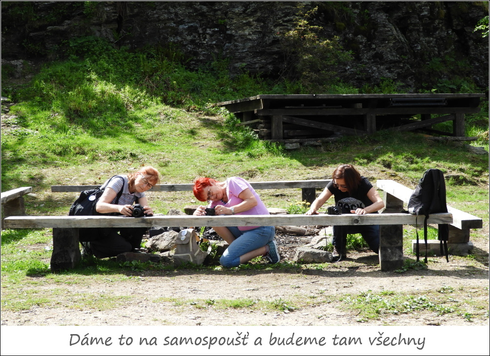 Po dobrém obědě v hospodě U čápa (ne v Čapím hnízdě) se naše osmičlenná skupina, posilněna chvíli jednou motorkářskou dvojicí, rozdělila. Hanka, Alena, Zdenka a já jsme se do Kořenova vracely po svých a cestou si užívaly nejen krásného teplého počasí, fotografování, ale především své přítomnosti. Bylo nám při tom putování skvěle. Ostatní (Zbyněk, Honza, Jana, Pavel) jeli do Kořenova autem.