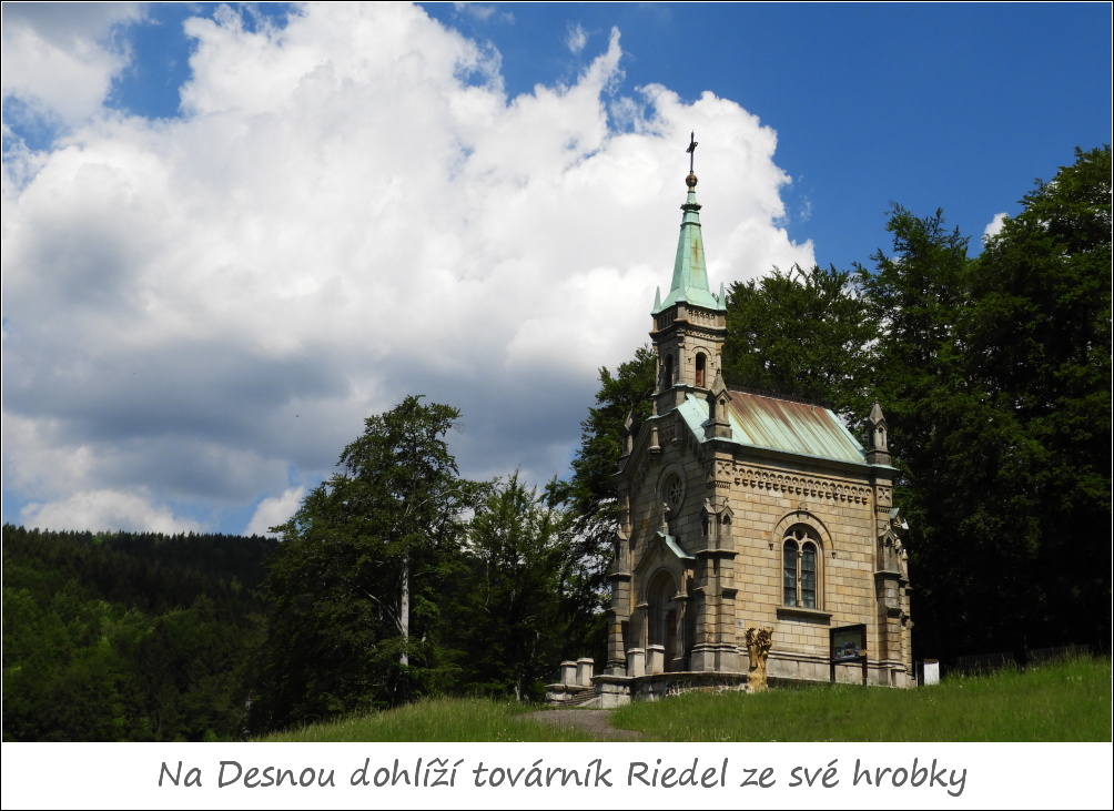 Ti, co ještě v Kořenově zůstávali, si většinou vychutnávali krásu zdejšího kraje. Naše jesenická parta se rozhodla pro výlet vlakem do Desné. V Desné byla pouť, ale pouťová lákadla nás nezlákala. Vypadalo to trochu na den, který nemá žádný cíl. Vydali jsme se na okruh k hrobce továrníka Riedla. Až na konci tohoto celkem nic neříkajícího okruhu jsme zjistili, že jsme mohli jít daleko kratší a pohodlnější cestou. Za trest jsme se vydali k vodopádům Černé Desné. Po počátečním nesouhlasném brblání se trest změnil v odměnu a my si túru krásně vychutnali. Jen bouřka nám zabránila v pokračování k přehradě Souš. Díky za to burácení, máme se na co vymlouvat.