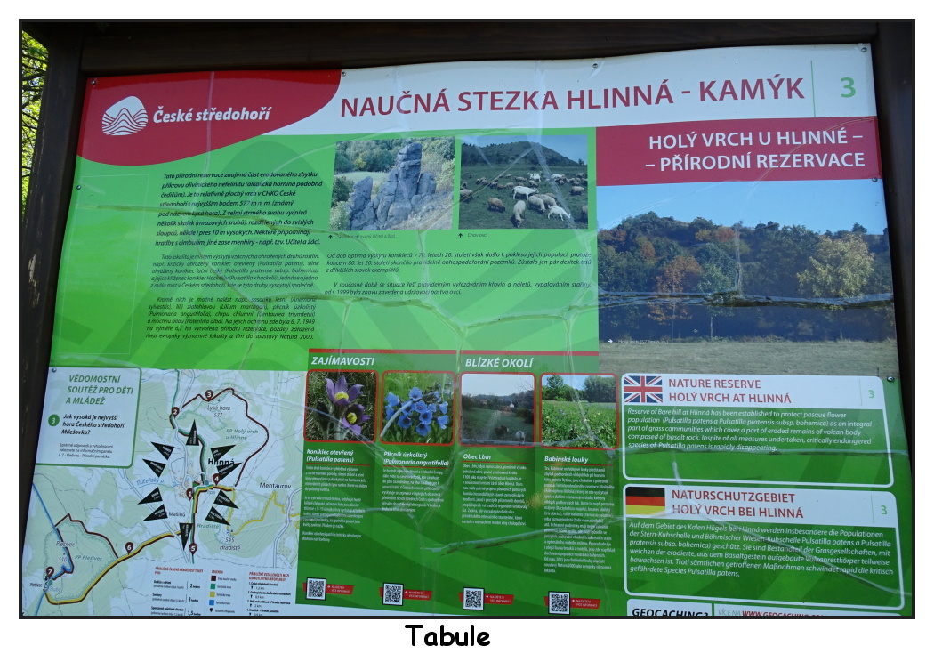 Říká se, že všechno souvisí se vším, a já dodávám, že nic s ničím. To platí i pro síť barevných turistických cest, kterými je protkáno České středohoří. Prošli jste se se mnou už několikrát Zlatou stezkou zemí hradů a dneska si ukrojíme pěkný kus ze stezky. A přesto nás žádný hrad nečeká. Inu, svět je plný překvapení. Co nás ale čeká a nemine, to je start pouhých 6 km od Litoměřic, a sice v Hlinné. Odtud jsme už zabrousili na Kamýk, Plešivec a Kalvárii (Kamýk, Plešivec a tři kříže, aneb proč má Plešivec pleš ). Pravda, tam hrad je, my se však dneska vydáme úplně na druhou stranu.