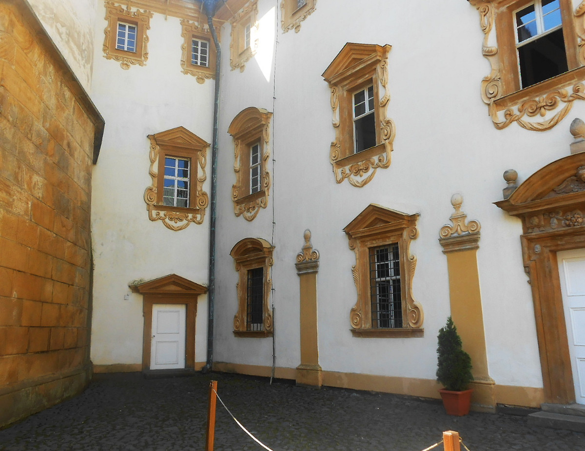 My jsme návštěvu vzali letecky, uvnitř zámku jsme nebyli, fotila jsem jen to, kam jsem mohla  nakouknout. K zámku patří ještě, kromě studánky, Bredovský letohrádek s barokní zahradou. Ten je uzavřen z důvodu chystané rekonstrukce. Cestou krásnou lipovou alejí, která je také chráněna, narazíte na Kapli nejsvětější trojice, která je z důvodu vandalismu zazděna.