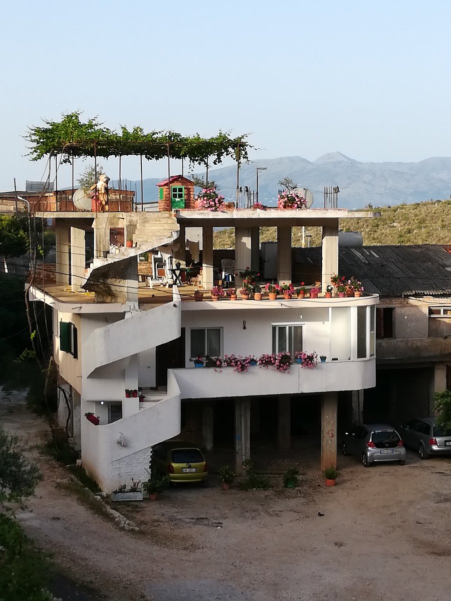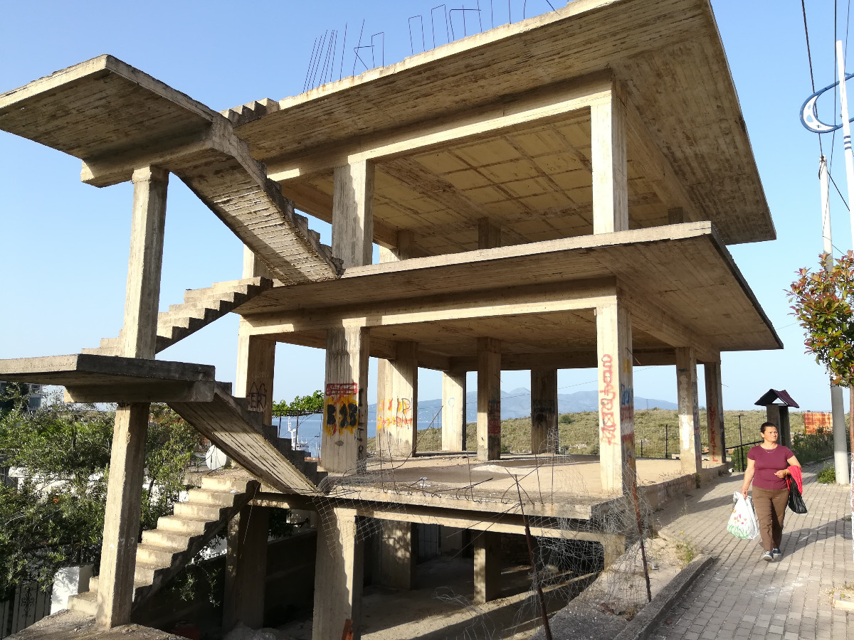 Ještě zdůrazním jeden naprosto charakteristický rys města, bohužel negativní: jsou tu desítky, či spíše stovky opuštěných hrubých staveb velkých domů. Jsou to betonové skelety – sloupy, schodiště, podlahy, jinak nic (fotky G3a, b). Procházíte městem a je vám smutno. Proč se nepokračuje ve stavbě? Mohu se jen dohadovat. Mnoho rodin úporně šetří, aby mohly pokračovat. Další rodiny mají hlavní osobu ve vězení kdesi v Evropě za pašování drog. jiní „investoři“ spekulovali s tím, že když začnou a ceny nemovitostí dále porostou )což se stalo), tak že snadno najdou kupce, který to dokončí. Nedokončí, protože neexistuje. Věřte, že je to pro turistu docela depresivní pohled.
