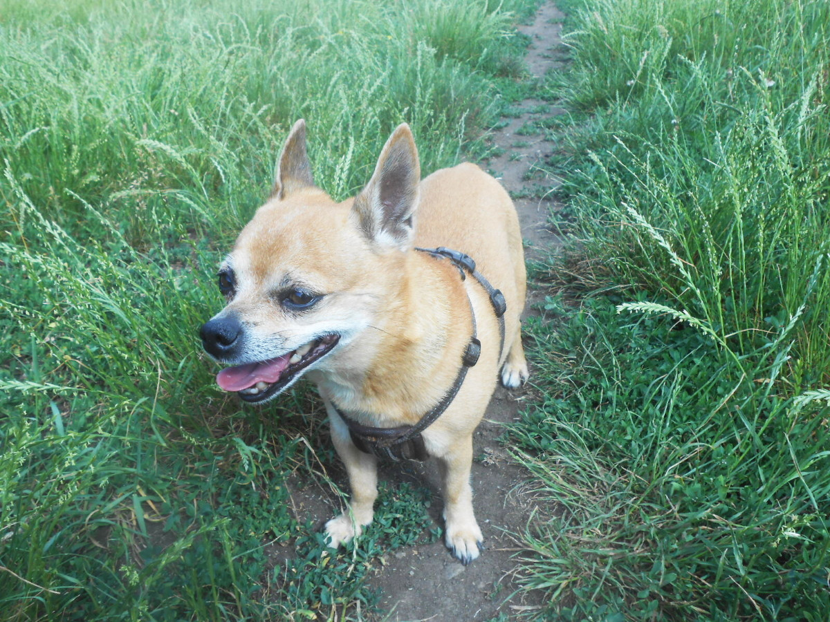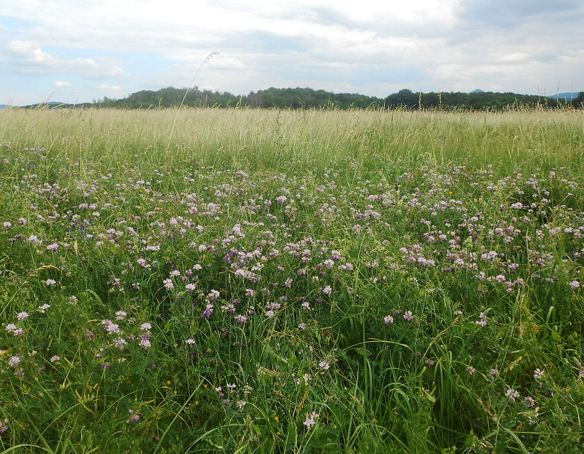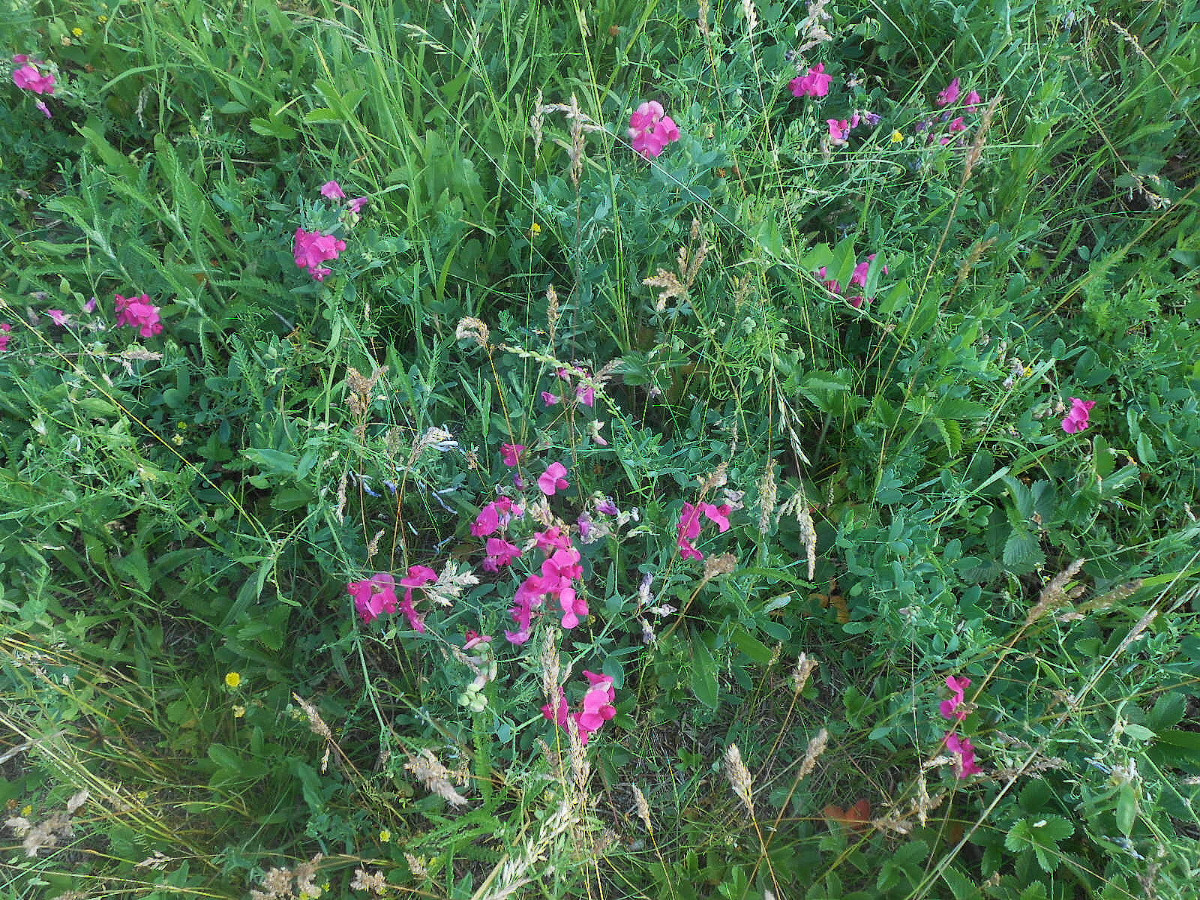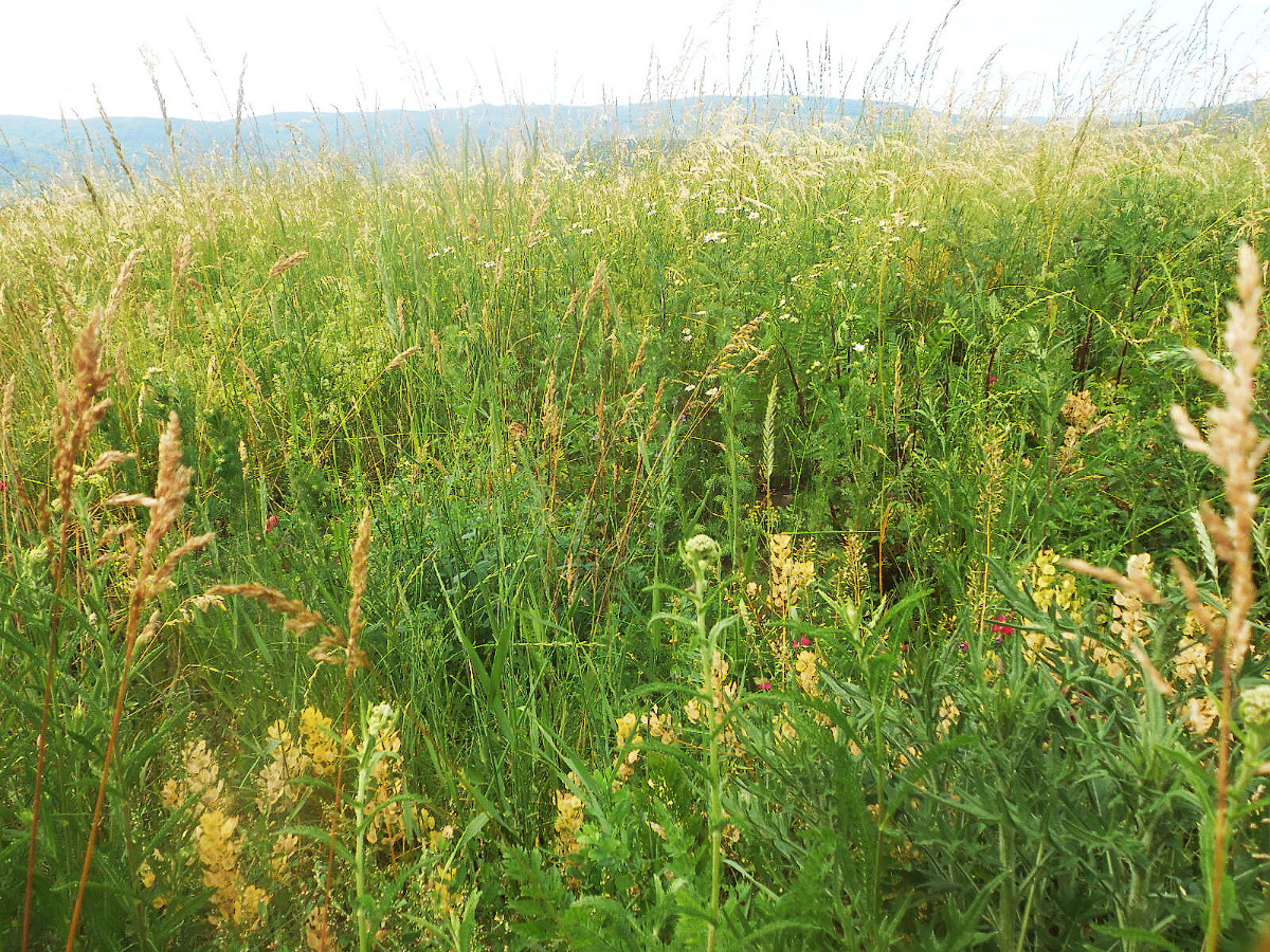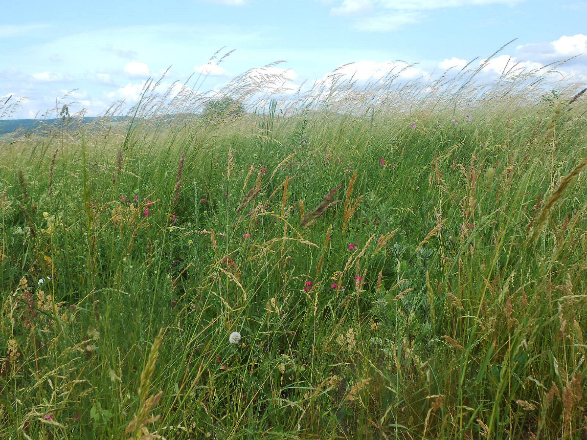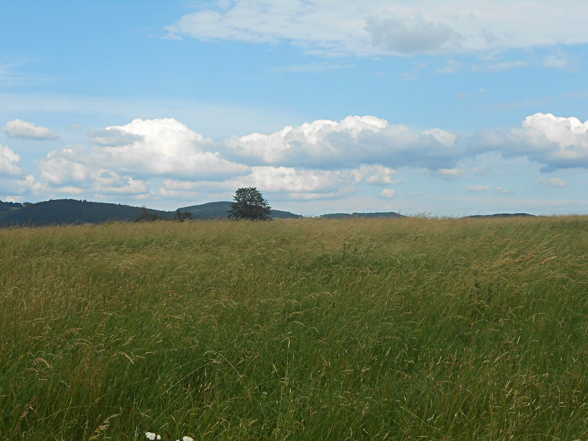 Za těch pár týdnů totiž tráva vyrostla tak, že psi v ní nebyli vidět, ale zato barevně byla pestřejší. Nebe nechtělo zůstat pozadu a mraky se také docela předvedly, takže občas jsem šla do kolen a snažila se to spojit. Kvítího tam moc nebylo, ale něco se přece jen vyskytlo, zato hmyz přede mnou prchal jak o závod. Takže kytičky, travička a mráčky ano, broučci a motýlci ani náhodou.