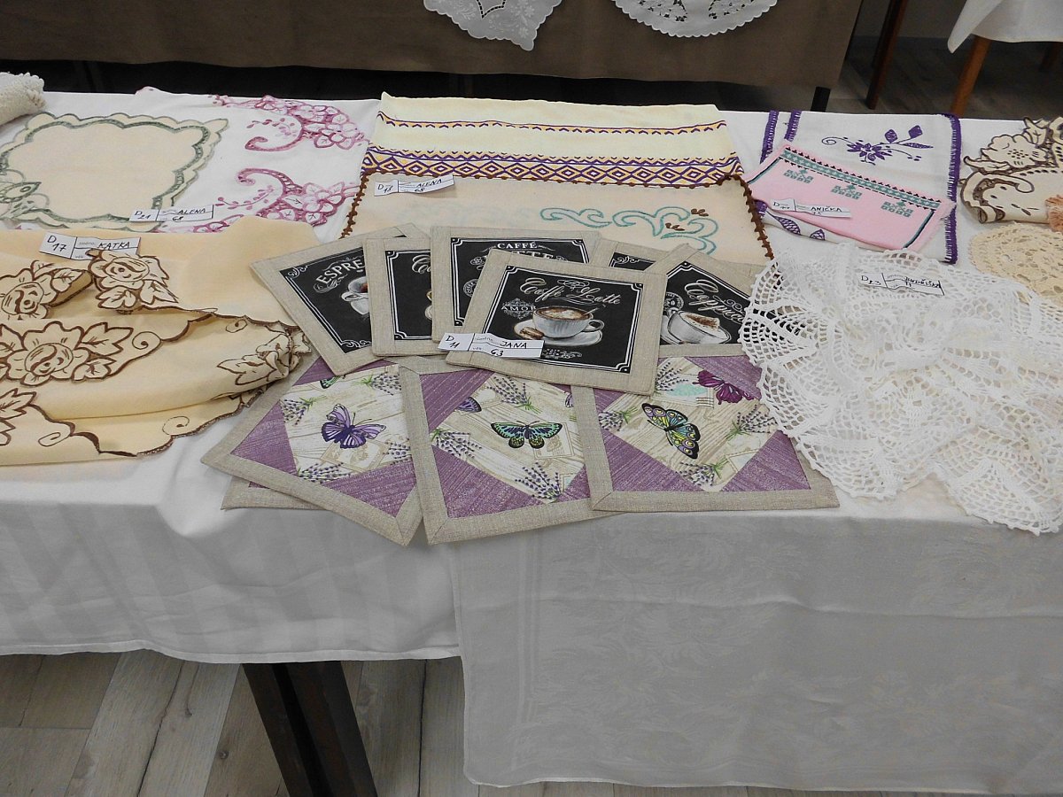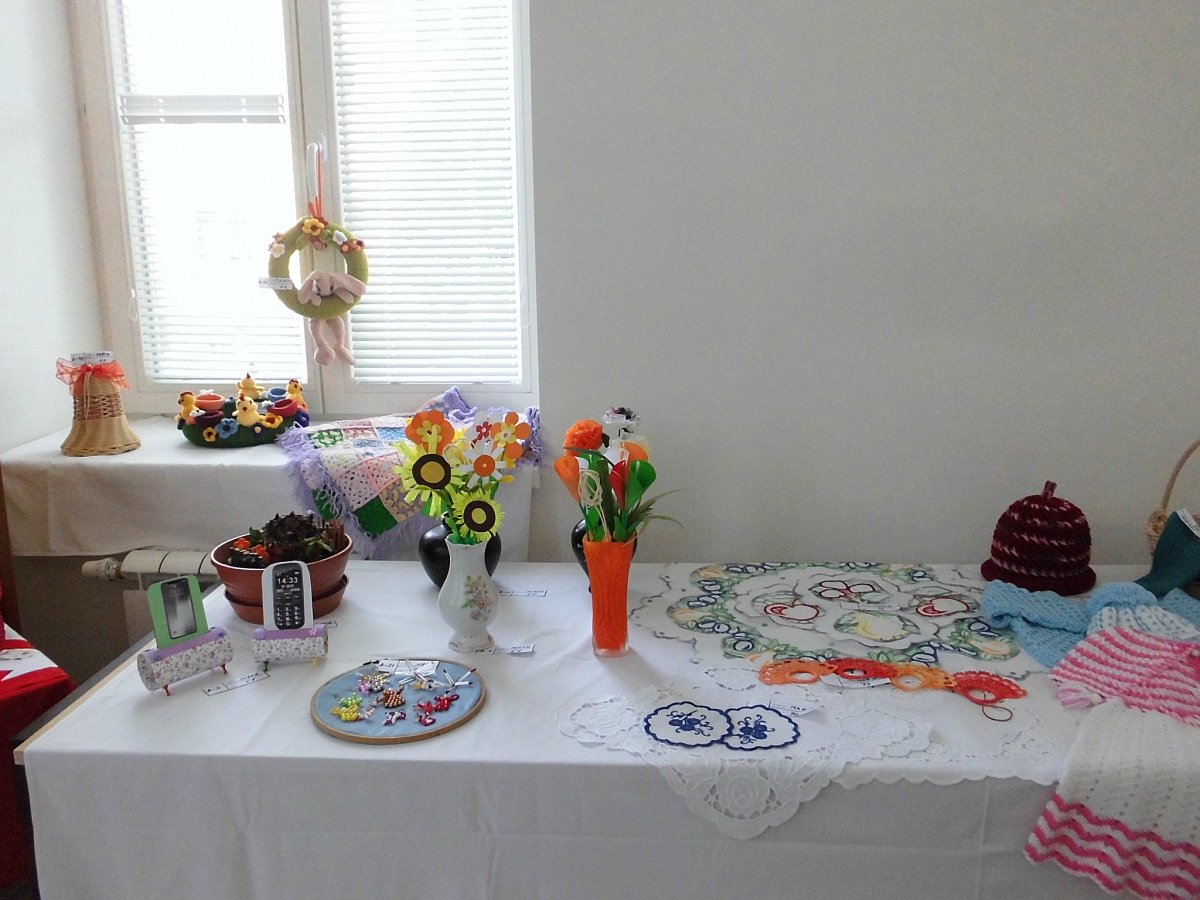 A bylo z čeho si vybírat. Bylo nač se koukat. Viděli jsme nejrůznější obrazy, výšivky, pleteniny, šité výrobky, dřevěné hračky, retro rádio, mandaly, výrobky z korálků, plastu, papírových roliček. A mnoho mnoho jiných  zajímavých technik .