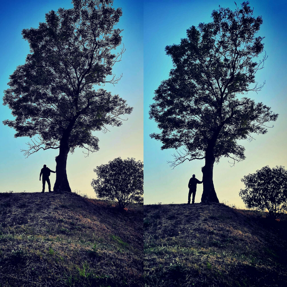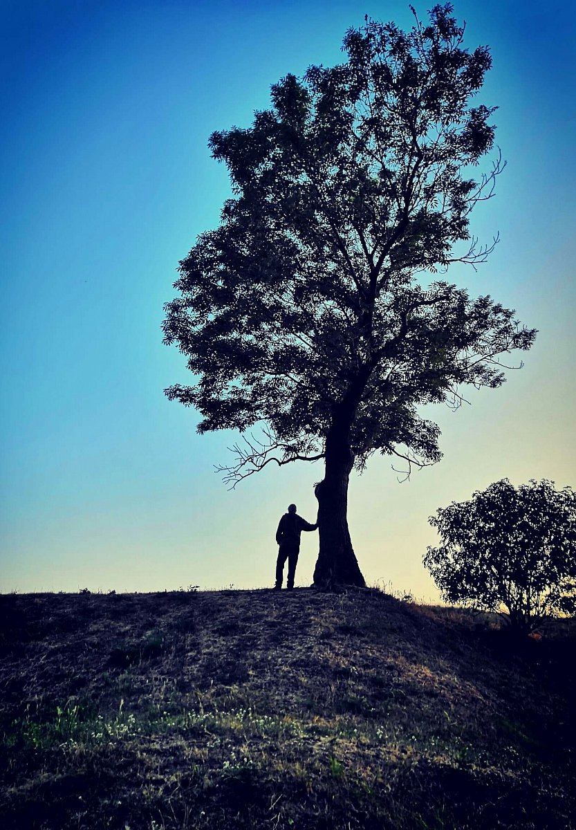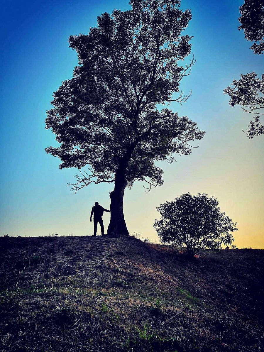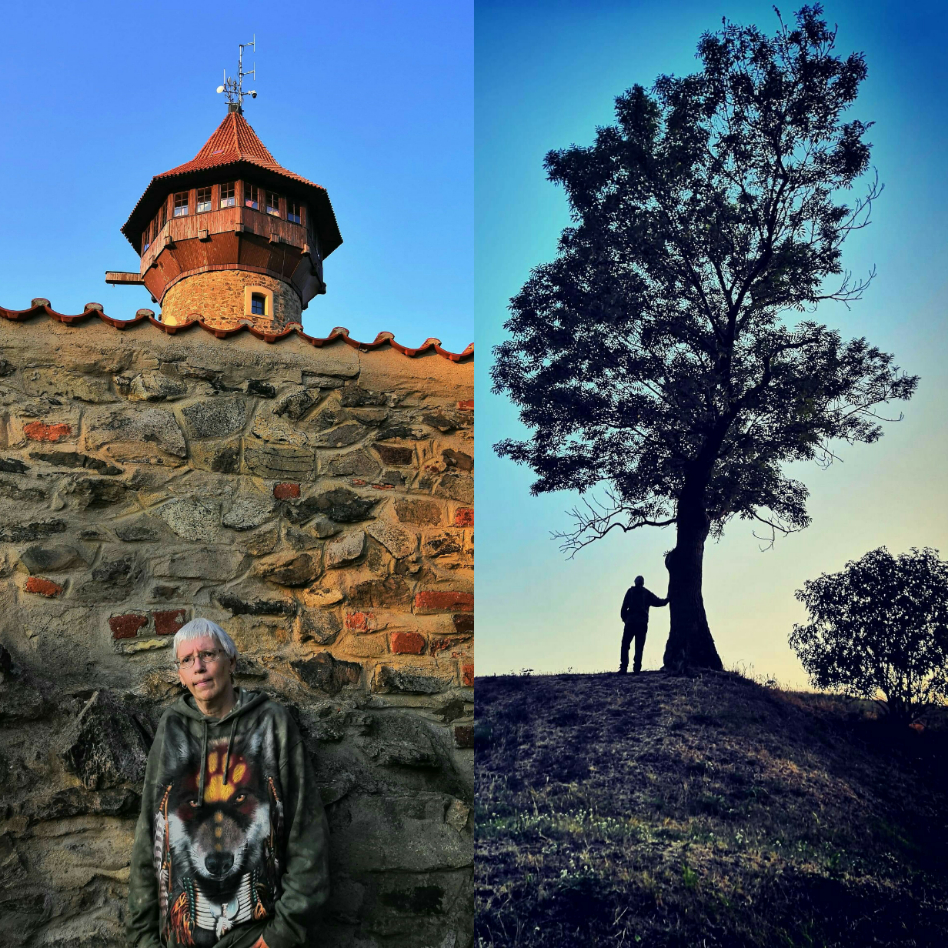 To nejlepší ale přišlo na konec. Ještě jsme obešli hrad z venku a náhle se před námi objevil. Strom jako z doby, kdy tu pobývali keltští Druidové. Oba jsme z něj cítili zvláštní energii. A tak vznikl  jeden z našich nejlepších snímků - silueta člověka a stromu, z kterého je cítit jednotu, klid duše. Myslím, že Luky byl v tu chvíli šťasten, že stoupání nevzdal. Ostatně tak to při našich cestách máme - vždy nás něco k sobě přitáhne...