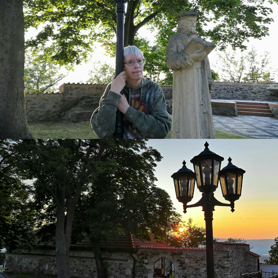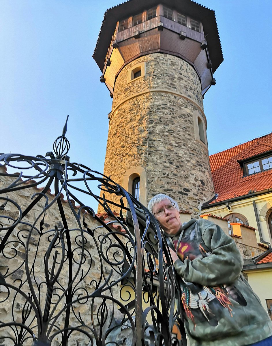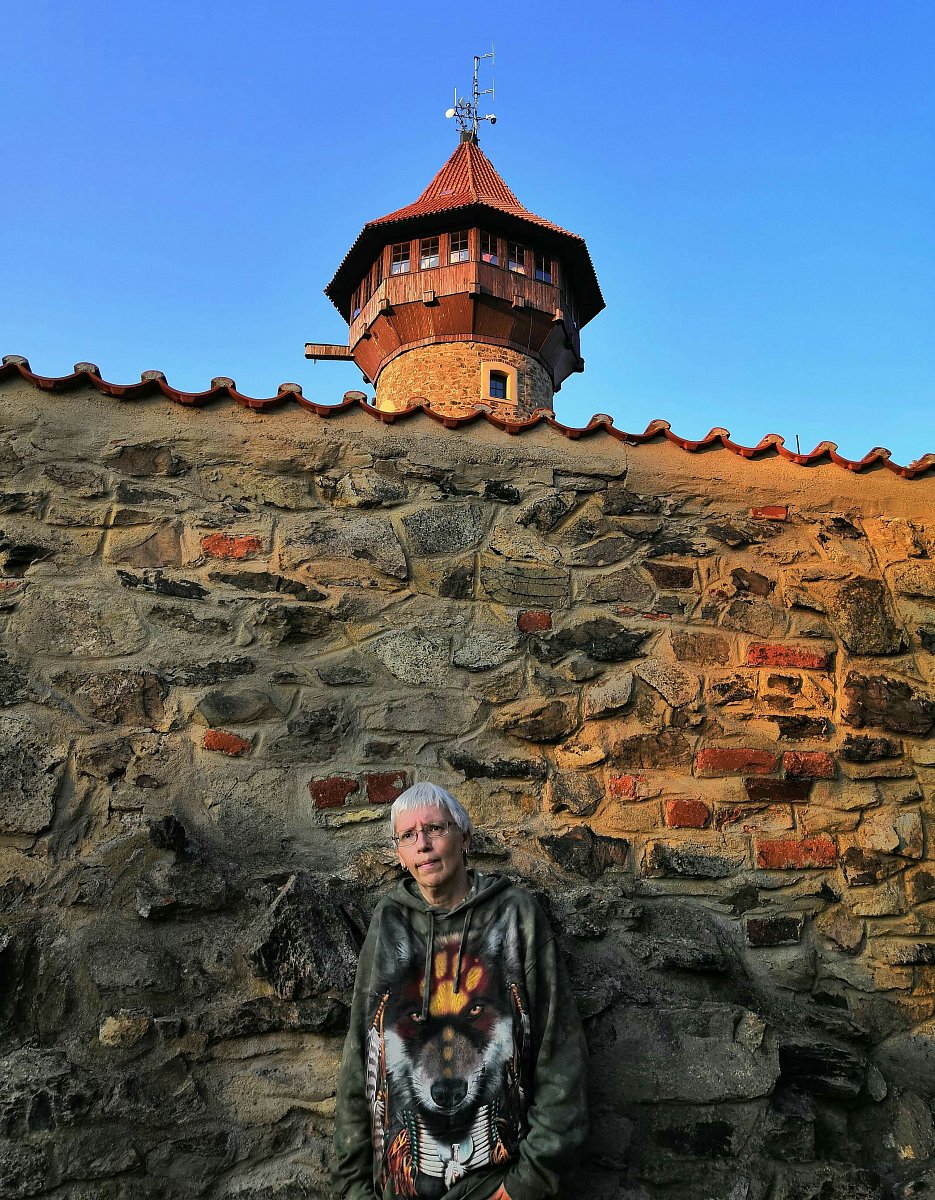 To nejlepší ale přišlo na konec. Ještě jsme obešli hrad z venku a náhle se před námi objevil. Strom jako z doby, kdy tu pobývali keltští Druidové. Oba jsme z něj cítili zvláštní energii. A tak vznikl  jeden z našich nejlepších snímků - silueta člověka a stromu, z kterého je cítit jednotu, klid duše. Myslím, že Luky byl v tu chvíli šťasten, že stoupání nevzdal. Ostatně tak to při našich cestách máme - vždy nás něco k sobě přitáhne...