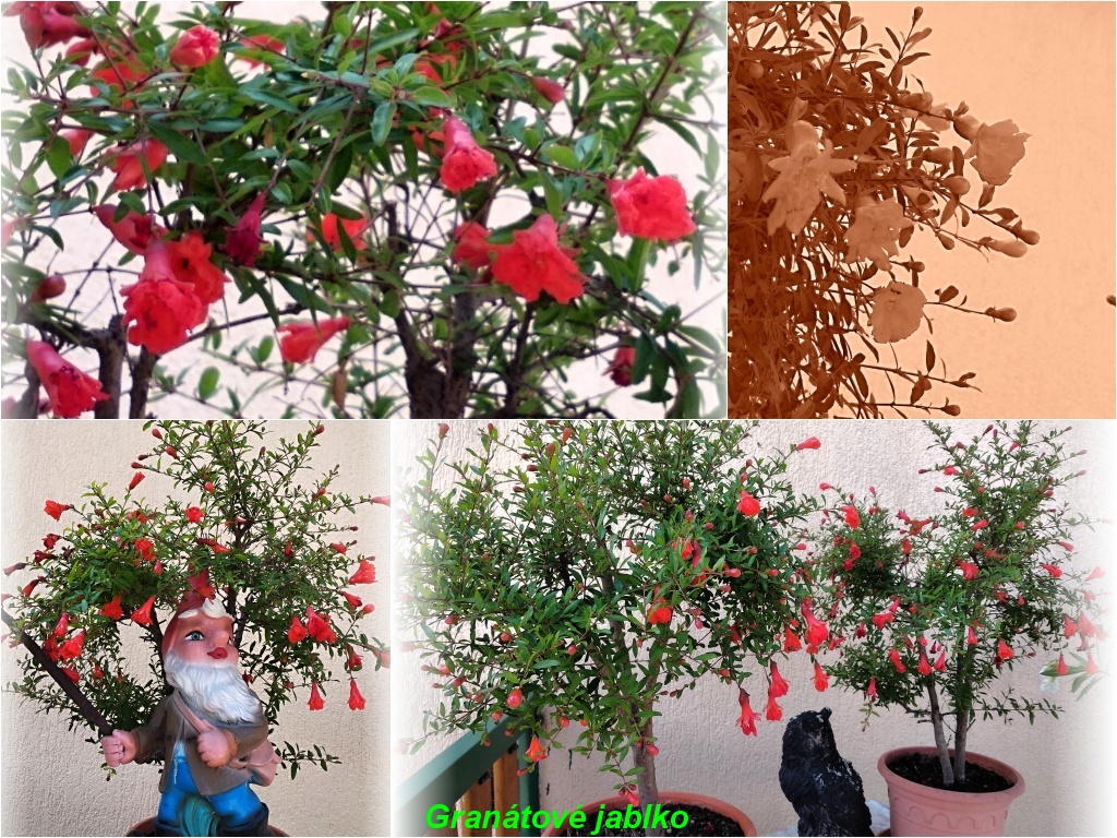 Můj ranní rituál začíná - jdu nakrmit kocoura, uvařím si kávu a jdu na terasu se pokochat kytičkami.  Trpaslík u granátového jablka je pro mě historicky cenný, kdysi za totáče v 70tých letech strýci na hranici sebrali jen čokoládu a žvýkačky, trpaslíčka mu nechali.. Když si tak sedím a okolo hledím, říkám si, jak se mám - dohlédnu na Krušné hory. obklopena přírodou, lidmi a zvířátky.