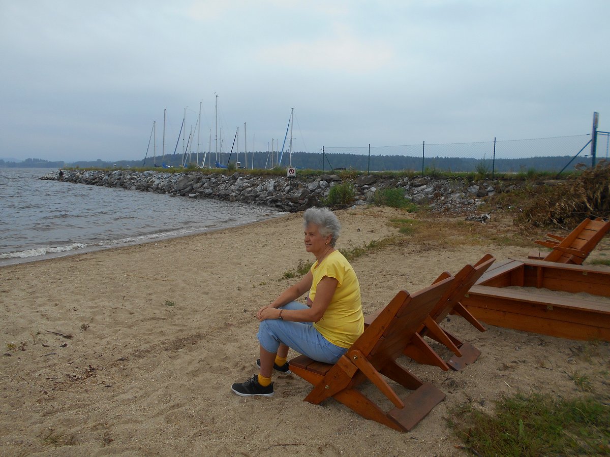 Tak tady je to české moře. Kolem dokola samé luxusní apartmány a na autech vidíte žluté značky NL. Přečetla jsem si jednu nabídku, v přízemí vhodné pro seniory a rodiny s dětmi. Cena na vyžádání, bez stravy. A vlastně, proč ne? Dýchá tady na vás cizina ze všech stran. Prohlédla jsem si půjčovnu lodí a stojí tady také fronta a s miminkem, opatřeným plovoucí vestou, jdou do lodi. Lidé jezdí na kolech, jdou promenádou po pobřeží, koupají a opalují se, děti mají různá cvičiště.