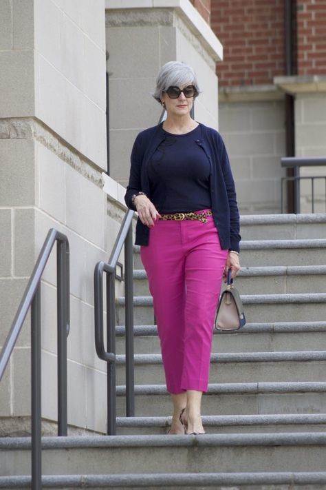 Tak tady je malá inspirace. Ukázka, že typů, střihů a barev kalhot je hodně a všechny mohou slušet i dámám vyššího věku.