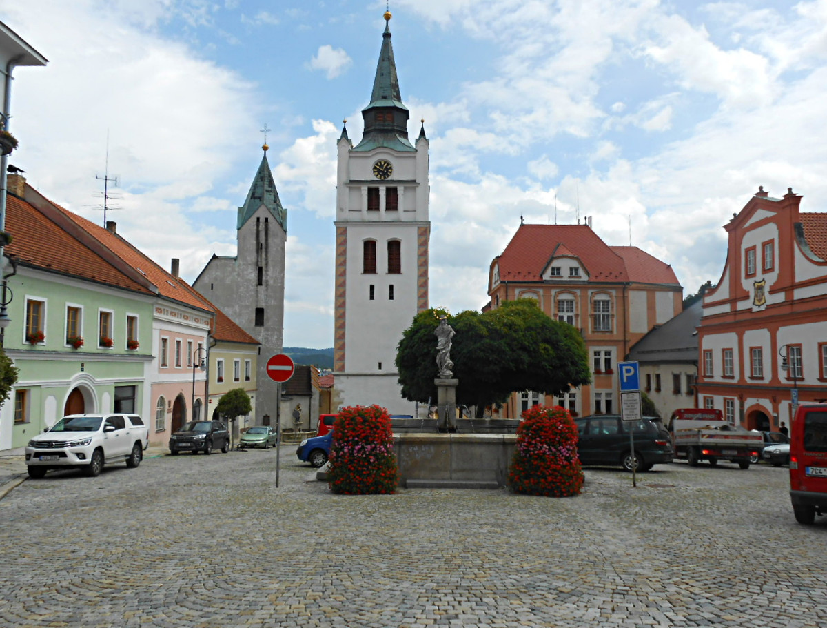 Několik let si plánujeme při pobytu v Blatné výlet do Vimperku a letos se nám to konečně podařilo. Kdysi jsem tam byla se školou na exkurzi v textilní továrně na košile, na to si ale nepamatuji. Pamatuji si, že jsem tam byla pracovně, když jsem pracovala na Barrandově. Točila se tam Štorchova trilogie z pravěku, bydleli jsme tenkrát v hotelu Zlatá Hvězda. Středa 7.8. 2019 se od rána jevila jako ideální den. Bylo polojasno, i když dost teplo, ale dalo se to vydržet.