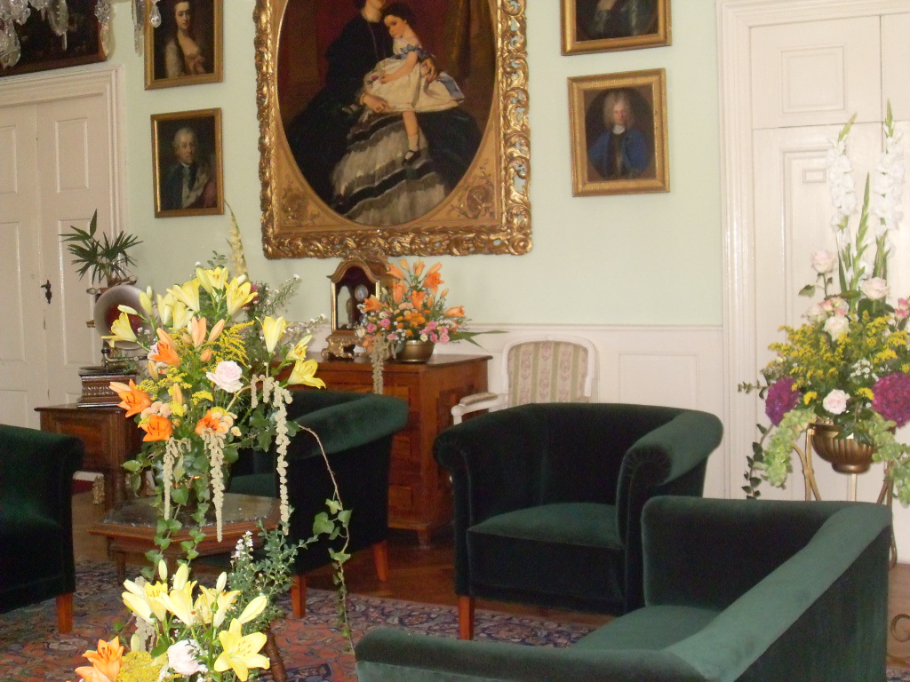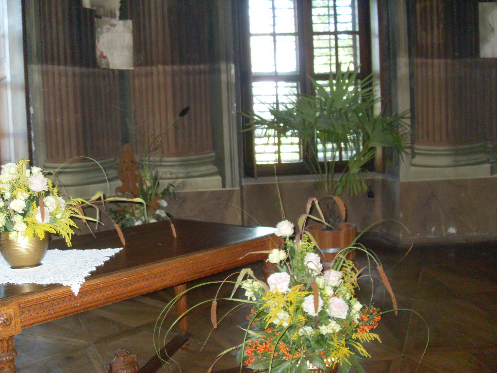 Měli jsme veliké štěstí, že o víkendu zde měli sympozium zámečtí aranžéři z objektů ve správě Národního památkového ústavu z celé republiky a vytvořili zde ve všech místnostech nádherné květinové aranžmá z jiřin a dalších podzimních květů a plodů...