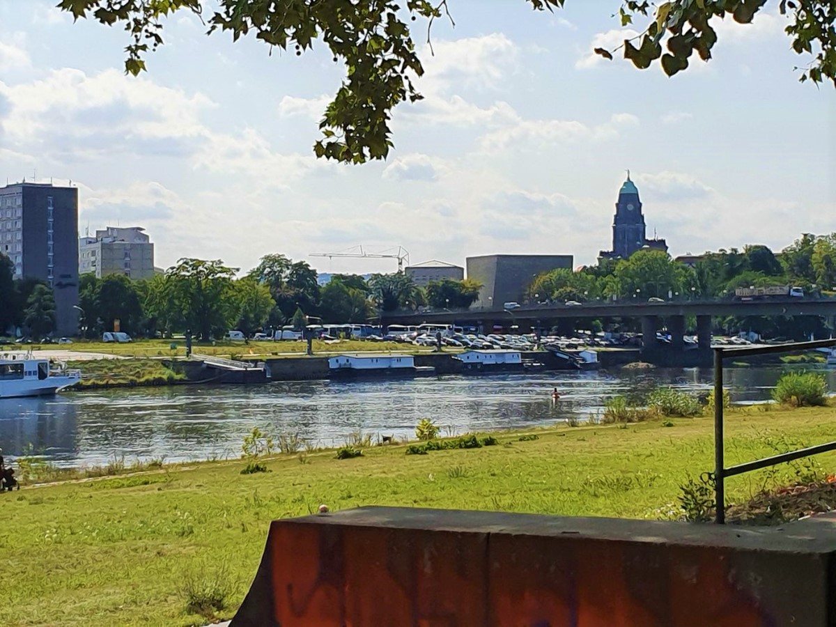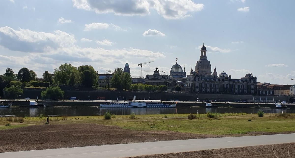 Na zpáteční cestu jsme se vydali pěšky kolem Labe až na náměstí Neumarkt -“Náměstí ticha”, jak jsem ho přejmenovala. Nejstarší tržní náměstí s kostelem panny Marie - Frauenkirche, kostela zcela zničeného a znovu postaveného. Tam jsme padli na židle, vychutnávali atmosféru a žasli, jak ve velkoměstě může být takový klid. A aby ty chvíle byly ještě příjemnější, dali jsme si obří zmrzlinové poháry a kafe. Moje spokojenost nabyla takových rozměrů, že se mi nechtělo vůbec vstát a seděla bych tam asi doteď, kdyby mi nebylo líto čekajícího psa.