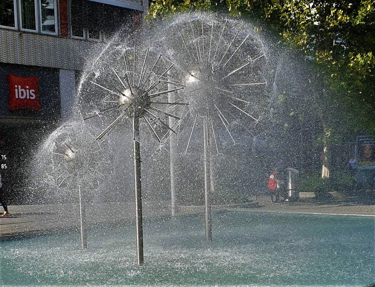 Dorazili jsme kolem poledne, auta jsme nechali u nádraží, a abychom si urychlili cestu, svezli jsme se tramvají. V Drážďanech jsem byla jako rodilá tepličanda samozřejmě už párkrát, kdysi jako holka před mnoha lety a před nedávnem jsme jen projížděli. A tak mne udivila proměna města málem v pěší zónu - doprava je totiž svedena pod zem. Přímo mne fascinoval neskutečný klid. Nevím, jestli pod zemí bylo i všech 650 tisíc obyvatel Drážďan v tu dobu, kdy jsme tam byli teď my, ale skoro nikde nikdo. Přijela sáhodlouhá tramvaj a my se nemuseli cpát tělo na tělo jako v Praze, ale v podstatě jsme ji měli málem celou jen sami pro sebe! No, řekněte, kde máte sami pro sebe celou dlouhatánskou tramvaj ??? Vystoupili jsme a vpadli přímo pod vodotrysky krásné fontány. Dál jsme pokračovali pěšky jako výzkumná výprava hledající dvorky umělců. Když jsme dorazili do čtvrti (samozřejmě bez map, zato jsme stáli každou chvíli na křižovatkách a mužští čučeli do “chytrejch” s GPS, aby našli požadovanou ulici), prohlíželi jsme si všechny ty krámky a kavárničky, kolem kterých jsme procházeli. Tam lidé byli, neboť byl čas oběda.