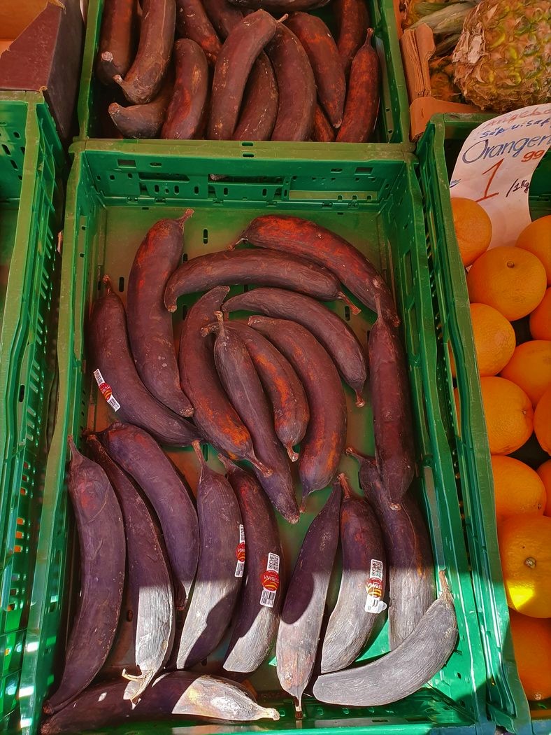 U stánku se zeleninou vystavenou venku mne zarazil pohled na banány - aspoň doufám, že to banány byly - ale naprosto ČERNÉ, jeden jako druhý a přitom vyrovnány jak vojáci v řadě, aby si zákazník vybral ! No tohle - jaké já mám mezery ve vzdělání!  Jsou ty banány už shnilé,  či je vzadu  upekli v troubě, nebo je snad spálilo sluníčko přímo tady na ulici? Anebo to je nějaký zvláštní druh, který mi doposud unikal? Už už jsem se chystala vniknout dovnitř, neboť nesnesu, když něco nevím. Provedu důkladný výslech prodavače černých banánů...jenže mi to nebylo dovoleno, protože jsem byla mými průvodci od studia banánů násilně odtažena kvůli časovému limitu. A tak vám neřeknu o tom novém druhu banánů nic...