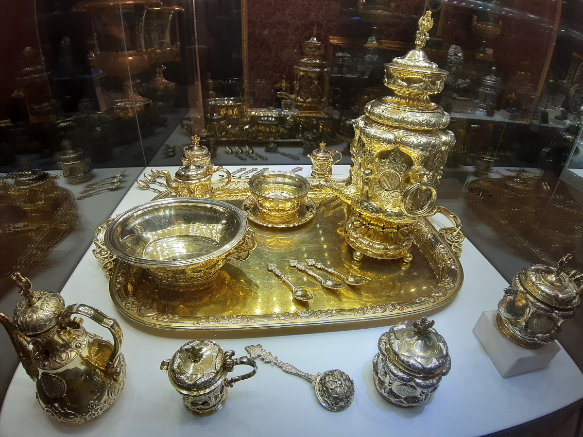 Ve vitrínách byly vystaveny nádherné šperkovnice, boxy na klenoty ve tvaru vajíček, v krásných síních. Uměl si ten klenotník žít… Na výstupu z muzea prodávali věrné kopie těch vajíček, ale… za tu cenu jednoho mám doma 20 plat vajíček po 30 kusech. No a jako milovník knedlíků s vajíčky jsem zvolil jakou to že možnost?… Hádejte jakou…