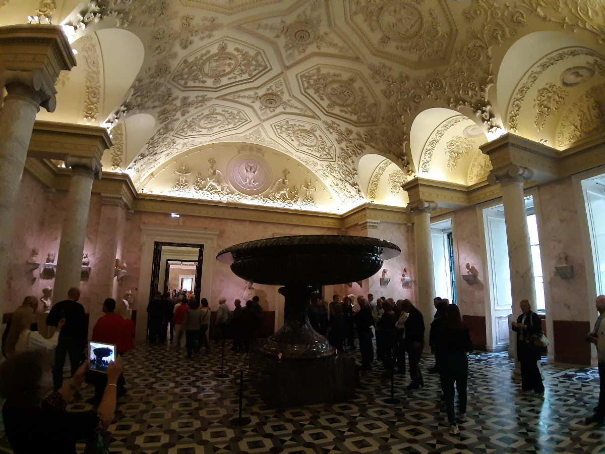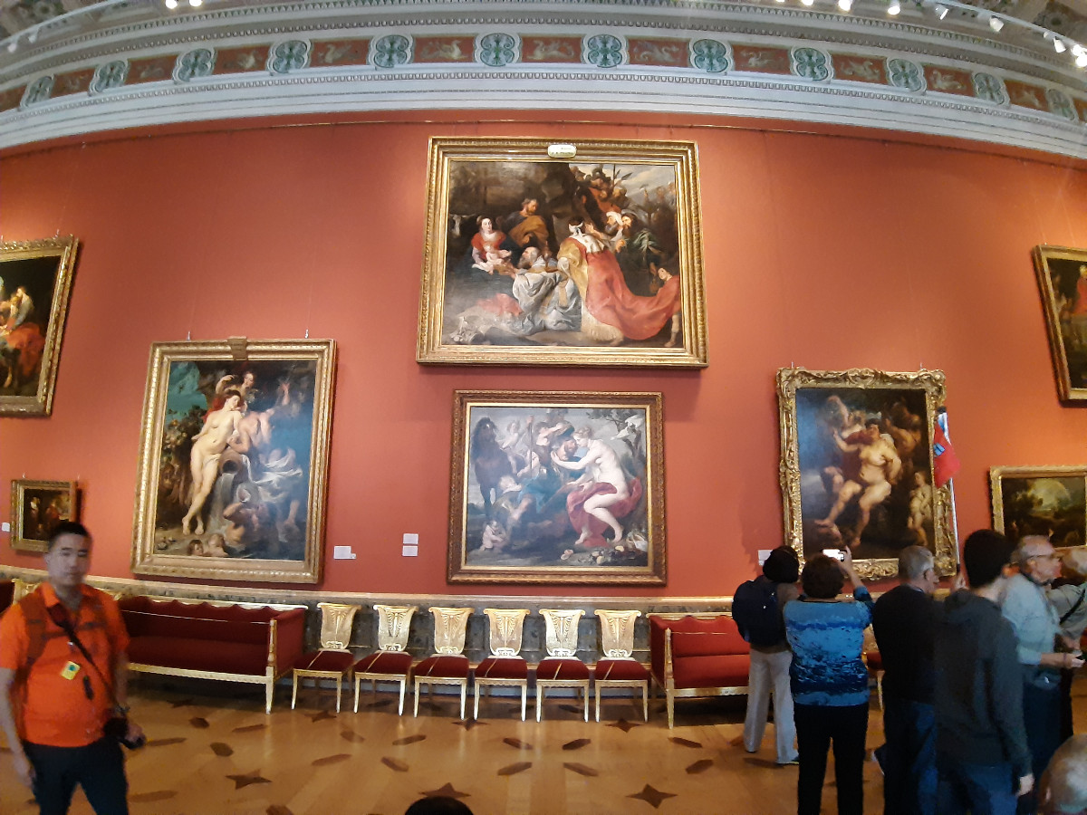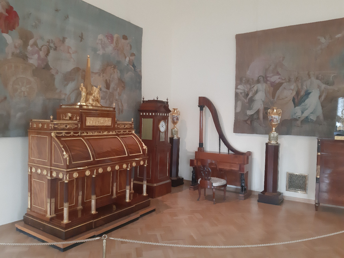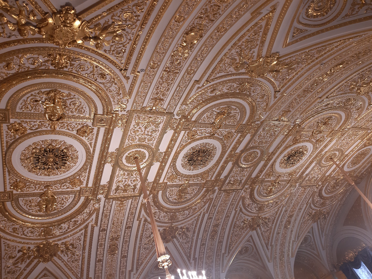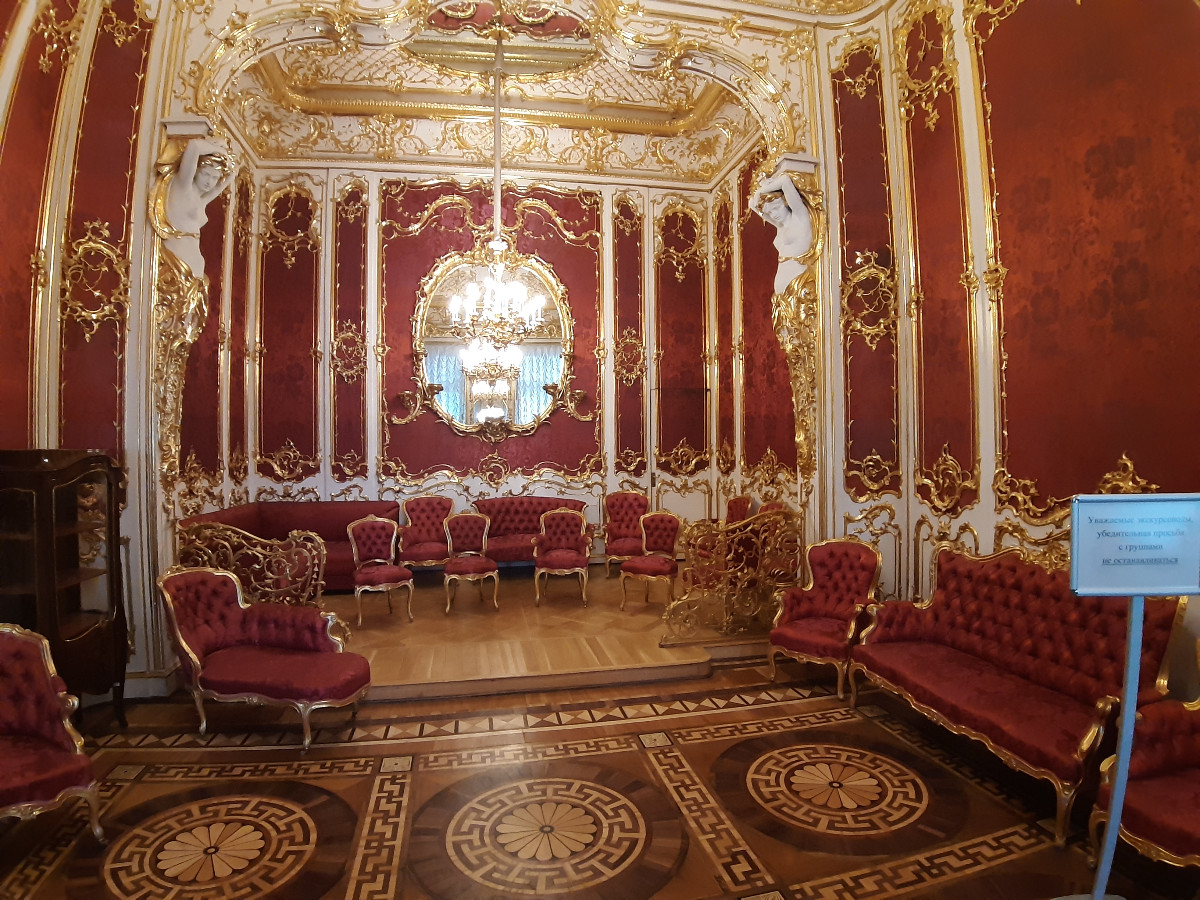 Palác byl nádherný. Vysoké prostorné komnaty, nábytek, krásné zrcadlové provedení, mohutné lustry, to vše tvořilo dokonalost a sladění historie. Ovšem mělo to i své proti. Palác je jak široký tak dlouhý, a k dispozici k nahlédnutí jsou otevřena dvě patra. Chodby jsou jak po obvodu, tak křížově umístěny přes komnaty, které jsou všechny průchozí. Doslova labyrint pro orientaci. Myslíte si, že jdete podél zdí paláce, zakoukáte se na vystavené kusy, projdete několika komnatami, a stojíte zas na začátku prohlídky, kterou jste začali. Dalo se tam dokonale zabloudit, a to se nám povedlo několikrát. A to nemluvím o druhém patře. Obrazy, klenoty, interiér, to nejde projít jen tak. Mezi tím všude v každé místnosti skupiny turistů se sluchátky a s průvodkyní, takže do toho všeho nás čekala kličkovaná.