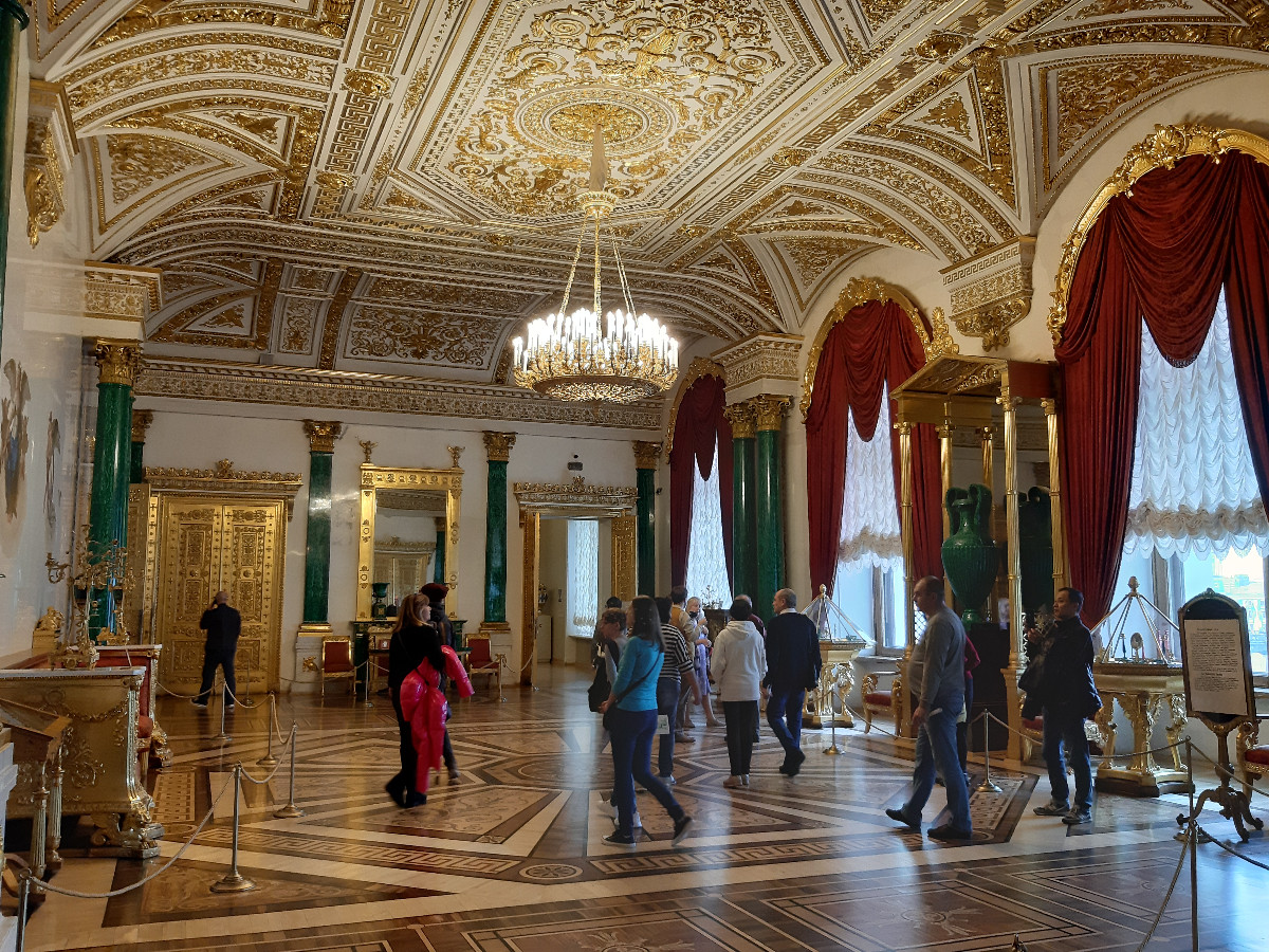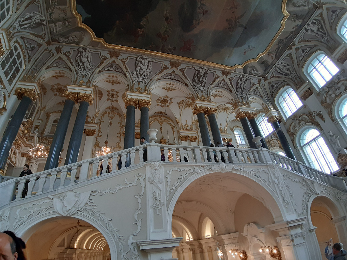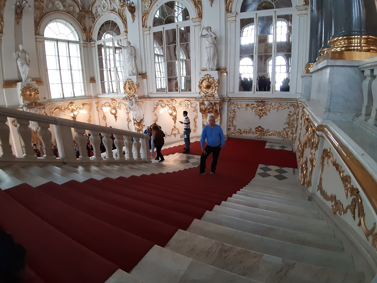 Zimní palác je komplex tří paláců, kde je i obrazárna. V průvodci je psáno, pokud doopravdy byste chtěli vše projít, poznat obrazovou galerii světových malířů a zajímat se o původ a historii, komplex Zimního paláce vám zabere v tomto směru 4 až 5 dní. Moc jsme ani nepořizovali fotografie, neboť s ohledem na počet turistů v prostorách místností to bylo těžko proveditelné. Netušili jsme, jak ti malí Číňani umí strkat a vtírat se mezi vás, aby byli o krok vpředu. Takže nám to trvalo ve zkrácené době celkem 4 hodiny a byli jsme zas před palácem. Na prohlídku dalších obrazů a vojenského muzea jsme už fakt neměli nějak sílu.