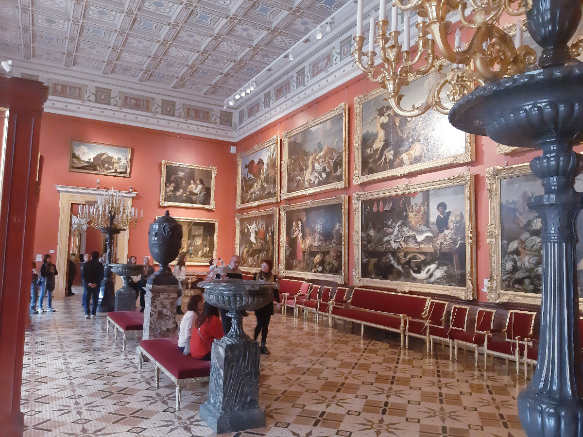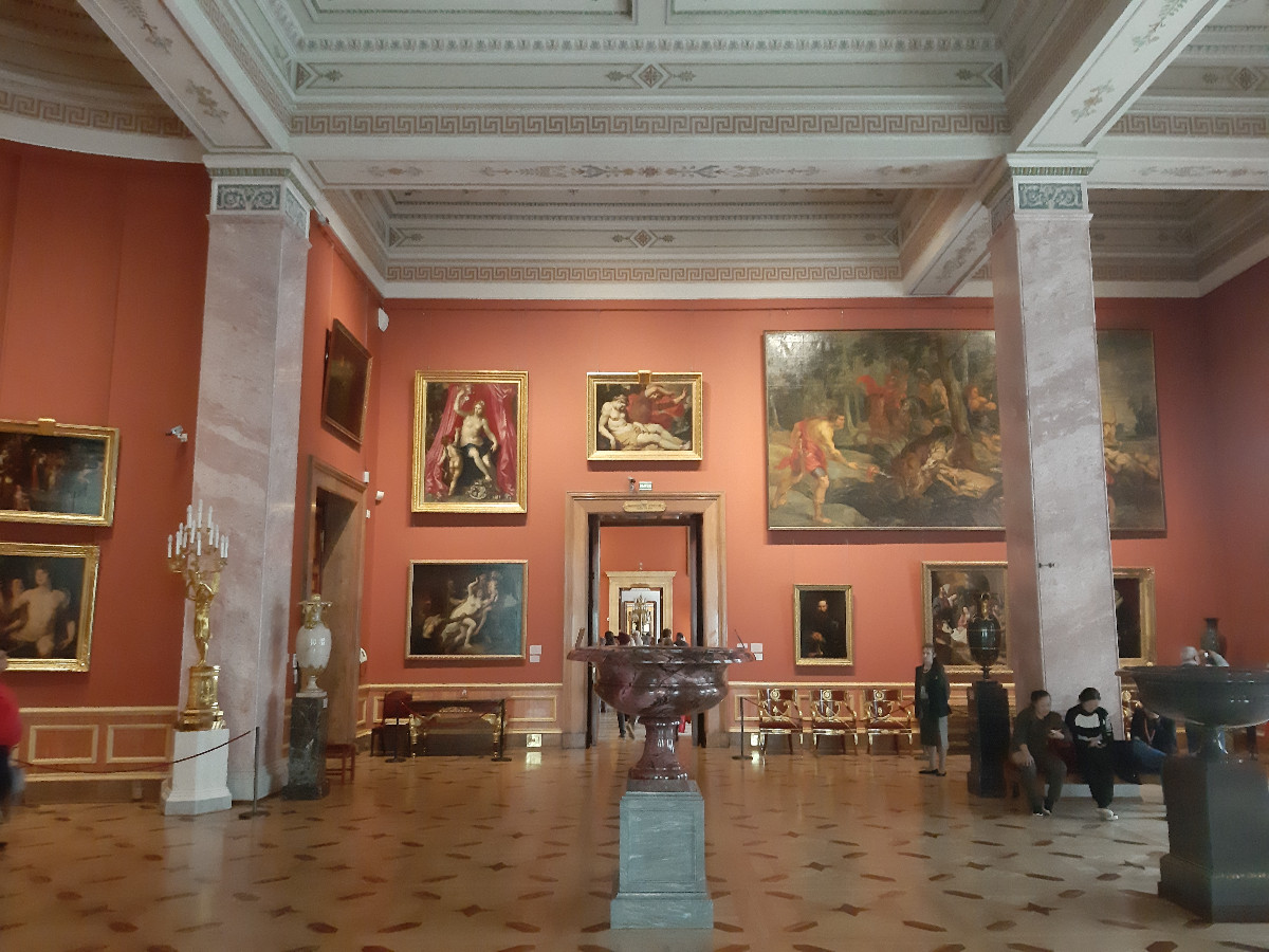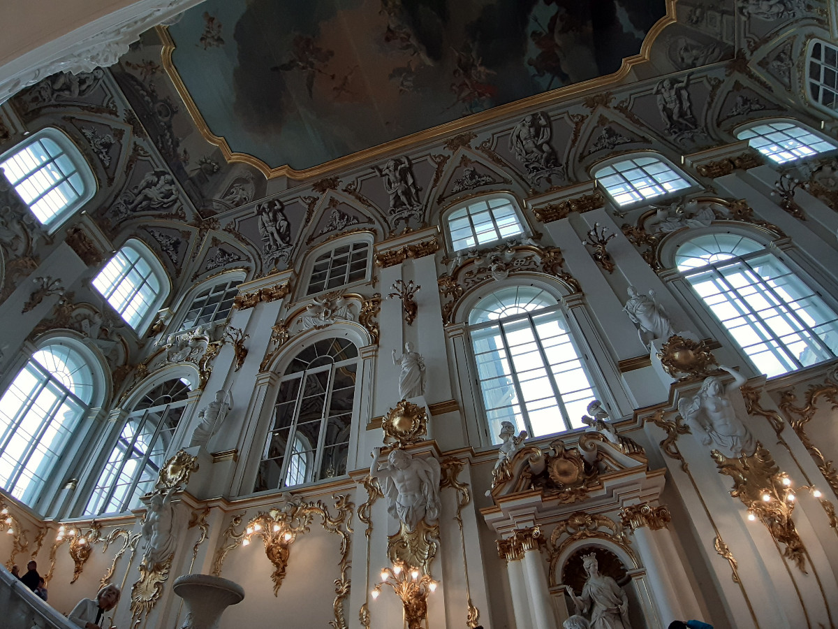 Zimní palác je komplex tří paláců, kde je i obrazárna. V průvodci je psáno, pokud doopravdy byste chtěli vše projít, poznat obrazovou galerii světových malířů a zajímat se o původ a historii, komplex Zimního paláce vám zabere v tomto směru 4 až 5 dní. Moc jsme ani nepořizovali fotografie, neboť s ohledem na počet turistů v prostorách místností to bylo těžko proveditelné. Netušili jsme, jak ti malí Číňani umí strkat a vtírat se mezi vás, aby byli o krok vpředu. Takže nám to trvalo ve zkrácené době celkem 4 hodiny a byli jsme zas před palácem. Na prohlídku dalších obrazů a vojenského muzea jsme už fakt neměli nějak sílu.