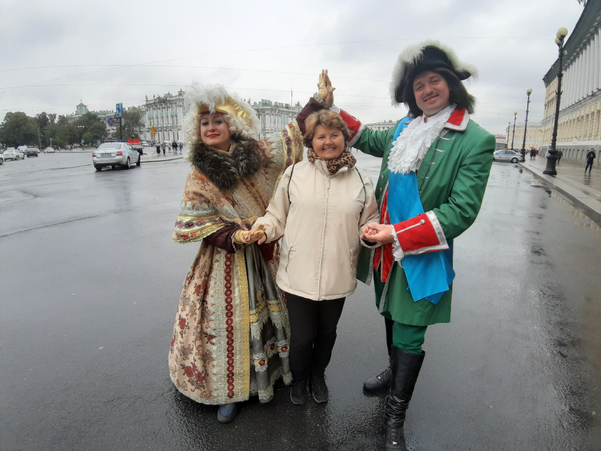 Probudili jsme se po poznávání vojenské historie Petrohradu, poznání lodí, co zná celý svět, plni sil, elánu a odhodlání. Čekal nás totiž turistický útok na Zimní palác a večerní překvapení pro Helču. Na snídani jsme se doplnili výživnými vitamíny, zdravým jídlem, což znamenalo sýr, klobáska, dortíky, lívanečky s marmeládou a smetanou, plněné rohlíčky s čokoládou, káva, pití, no když jsme si to dali na stůl na talířích a šli si pro pití, při návratu nás udivilo, proč dívky obslužné z kuchyně stály u stolu. Dohadovaly se, proč si zájezd turistů dal na jeden stůl snídani pro deset osob, když tam jsou jen dvě židle. Taky jsme se divili, kolik toho je, ale zázraky se dějí. Vše se vešlo do nás a ani nebylo po nás.