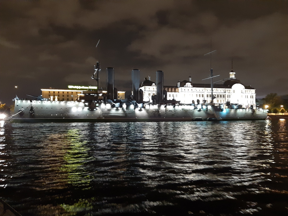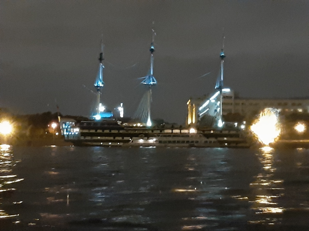 Došli jsme unaveni na hotel, a bez ohledu, jestli je den či noc, jsme se uvelebili na lůžka, že si odpočineme. Věděl jsem, že nesmíme usnout do rána. Čekala nás ještě jedna akce. Noční projížďka lodí po Něvě a účast při nočním otevření mostu na Něvě pro nákladní dopravu. Jen jaksi to mělo malý zádrhel. Vyplutí lodě bylo v 0,30 druhého dne, a plavba končila ve 02.30 minut. Takže jsme se probudili na večer, posilnili jsme se, a pomalu jsme prošli hlavní třídu Něvský Prospekt, zastavili jsme se u nasvíceného kostela s kolonádou, která nám připomněla Karlovy Vary. Večer chodníky vždy ožívají hudebními produkcemi, tak jsme to měli i s hudbou, a došli do přístavu.