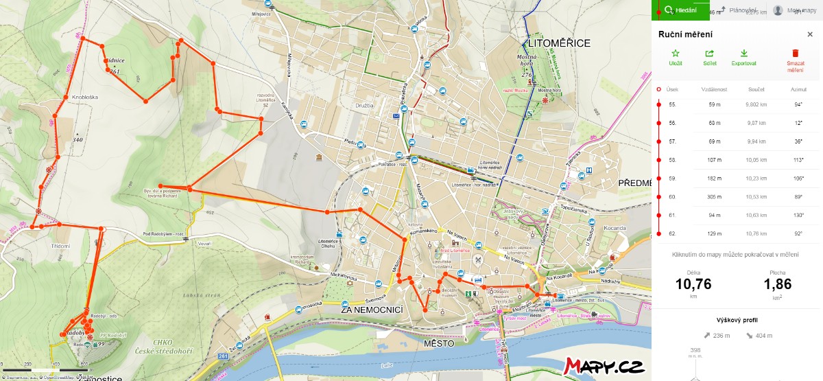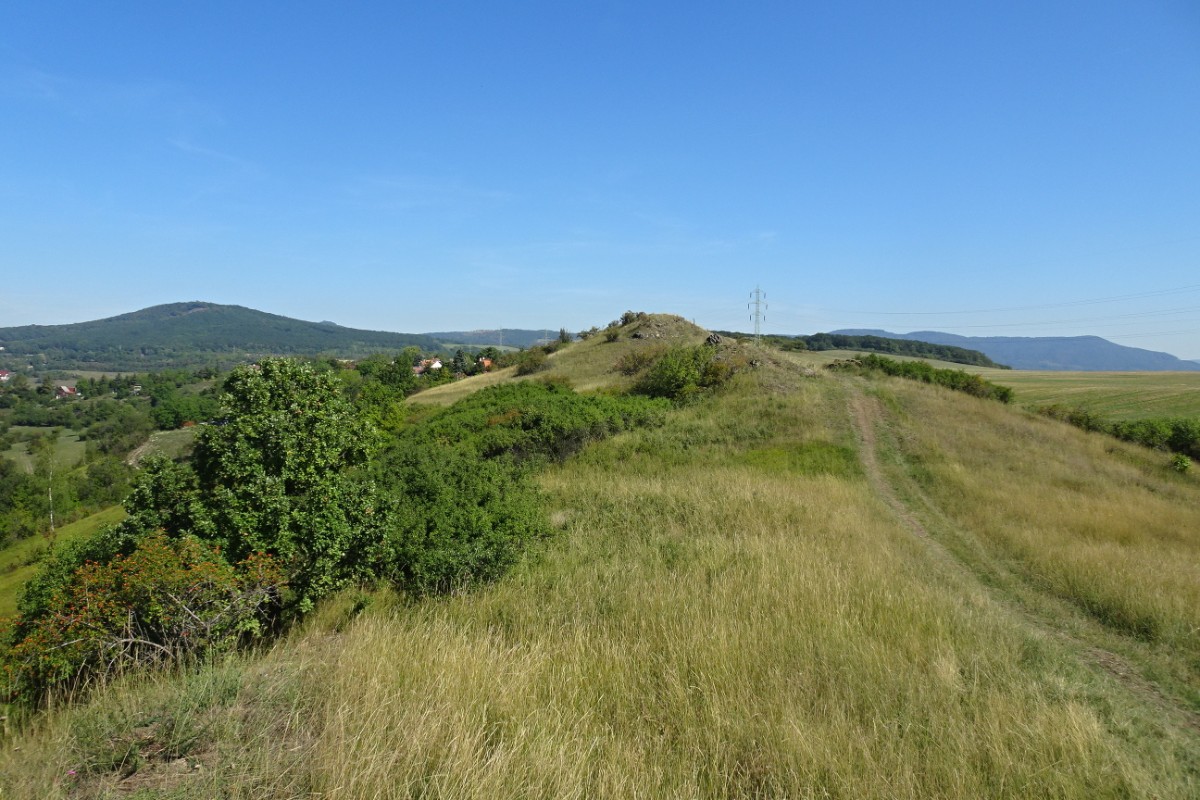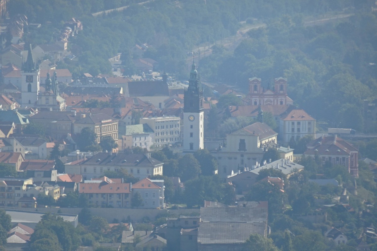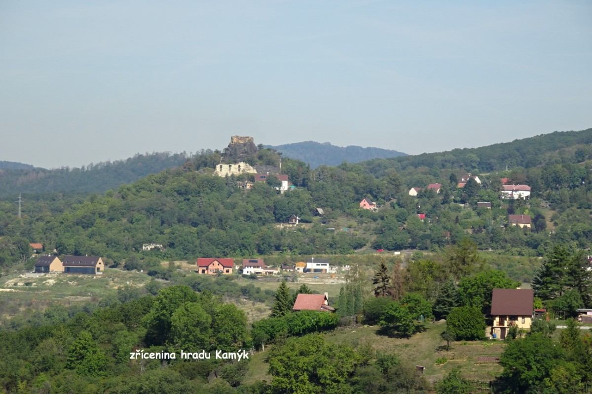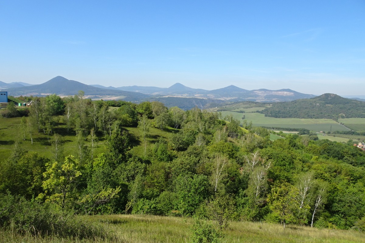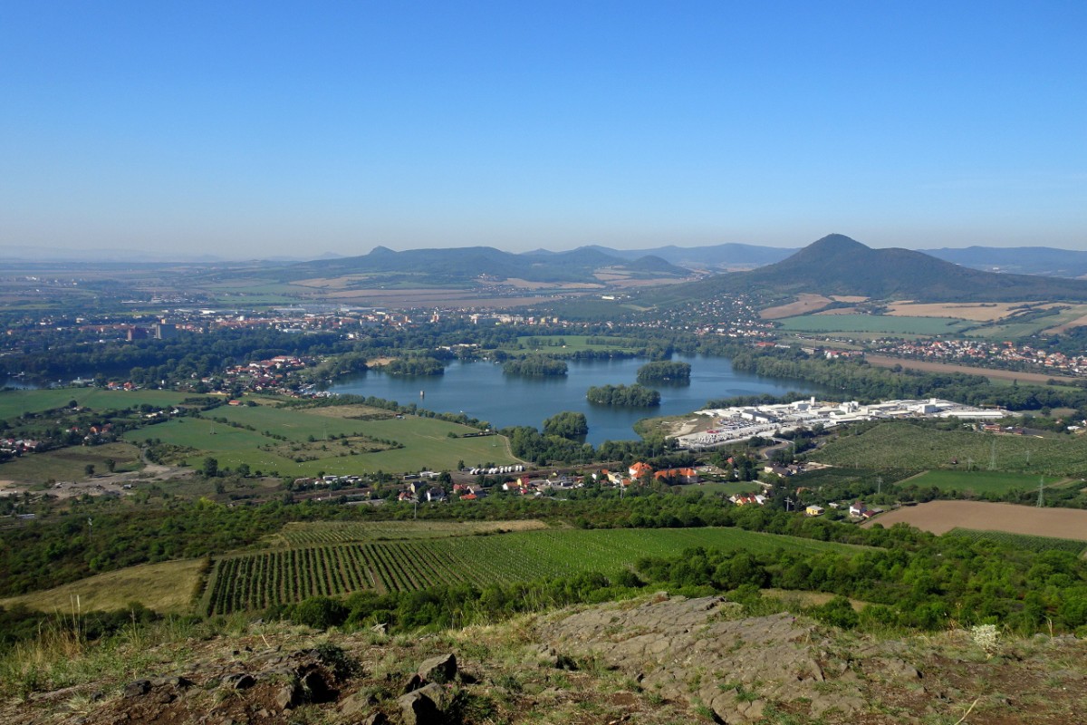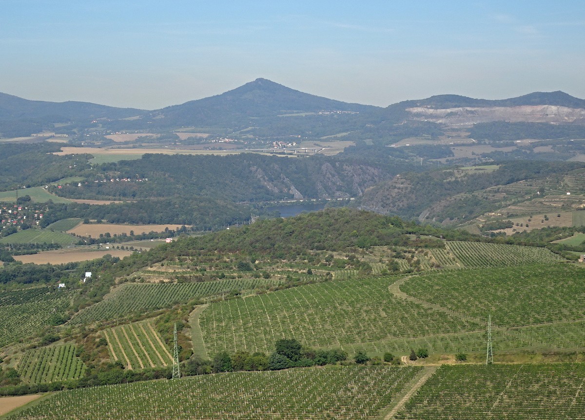 Nějaký ten pátek už jsem na něm nebyla a natěšeně jsem čekala na vhodný den s pěknou viditelností. Ve středu 4. září ráno sluníčko svítilo a slibně na mě mrkalo. V Litoměřicích jsem se sešla se svou kamarádkou, turistkou Věrou, a vyrazily jsme. Od silnice vede pěšina loukou. Na úpatí jsme se rozhodly podívat se nejdřív na dno onoho zdaleka viditelného zubu, způsobeného těžbou kamene. Skalní stěna je učebnicovou ukázkou sloupcové odlučnosti čediče. Pokochaly jsme se výhledem na České středohoří a vystoupaly "o patro výš", tj. na samé temeno Radobýlu s kovovým křížem. Věřte mi, srdce tu usedá a nechce se Vám odtrhnout oči od té krásy od obzoru k obzoru. Říp, Házmburk, Lovoš, Milešovka a nepřeberné množství středohorských kopců a kopečků. Pod námi se rozprostírá Žernosecké jezero. Méně úchvatný pohled je na továrnu Lovochemie v Lovosicích a panelárnu v Žalhosticích. Čas letěl a my jsme musely pokročit dál. Vrátily jsme se k silnici a těsně před Michalovicemi odbočily k tzv. třem vrškům. Jsou to takové zelené pupínky s překrásnými výhledy. Slezly jsme hezky jeden po druhém, na každém chviličku poseděly a pokračovaly dál přes osadu Knobloška k Bídnici. Tento vrch jsme přešly hezky po louce až k lesu na jejím vršku a podle lesa pomalu scházely do zahrádkářské kolonie na kraji Litoměřic. Pokračovaly jsme dál ke vchodu do neblaze proslulé továrny Richard zbudované právě v útrobách Bídnice. Jistě všichni víte, že tady v bývalém dole vybudovali nacisté ke konci války utajenou podzemní továrnu na výrobu zbraní. O život tu nedobrovolně přišlo mnoho lidí. Čekala jsem pietní místo, ale stály jsme před těžkými vraty. V ne zrovna upraveném prostředí je tabule s informacemi o Richardu. Kamarádka mi vyprávěla, že pamatuje jako dítě, že tam ještě byly koleje a odstavené těžební vozíky.
