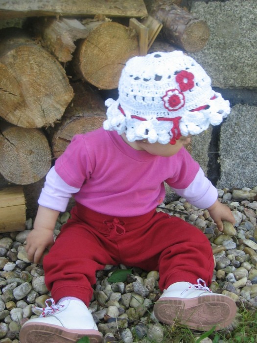 A pak se narodila první vnučka. Bylo tehdy horké léto a my jí neměli co dát na hlavu (kromě kapesníku, který si strhávala). Vždyť jsi nám pletla a háčkovala, pravila dcera, tak něco udělej ! Už to neumíš, viď, posmívala se. A to mě naštvalo. Zarazila jsem se a přemýšlela, kde jsou mé znalosti schované, kam spadly, odkud je vytáhnu...to přece není možné, vždyť já to už určitě všechno zapomněla, vždyť ani pořádně nevím, jak se drží háček ! Vyštrachala jsem přízi, sedla na zahradu, zahleděla se k obloze, jako bych čekala, že se mi odtamtud dostane pomoci. Popadla háček a začla řetízkem....a pak to najednou jelo úplně samo a já žasla sama nad sebou. Ono se to snad nezapomíná, zrovna tak jako plavání a brusleni i jízda na kole ! Do dvou hodin jsem měla hotový klobouček, který pak dědily i ostatní holky a klobouček byl pak na pískovištích obdivován.