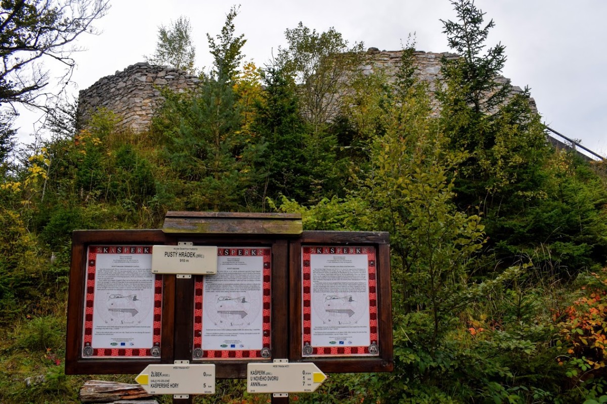 Naproti hradu Kašperk vede ještě cesta na Pustý Hrádek, což je  zřícenina hradu ležící na vrchu asi 400 m východně od hradu Kašperku. Stavba měla zabránit případným útočníkům v ostřelování níže položeného Kašperku z výšky. Tato pozdně gotická stavba pochází pravděpodobně z 15. století. Sem nahoru vede cesta vskutku "trnitá", ale výhledy na Kašperk a do okolí opět za to stojí.