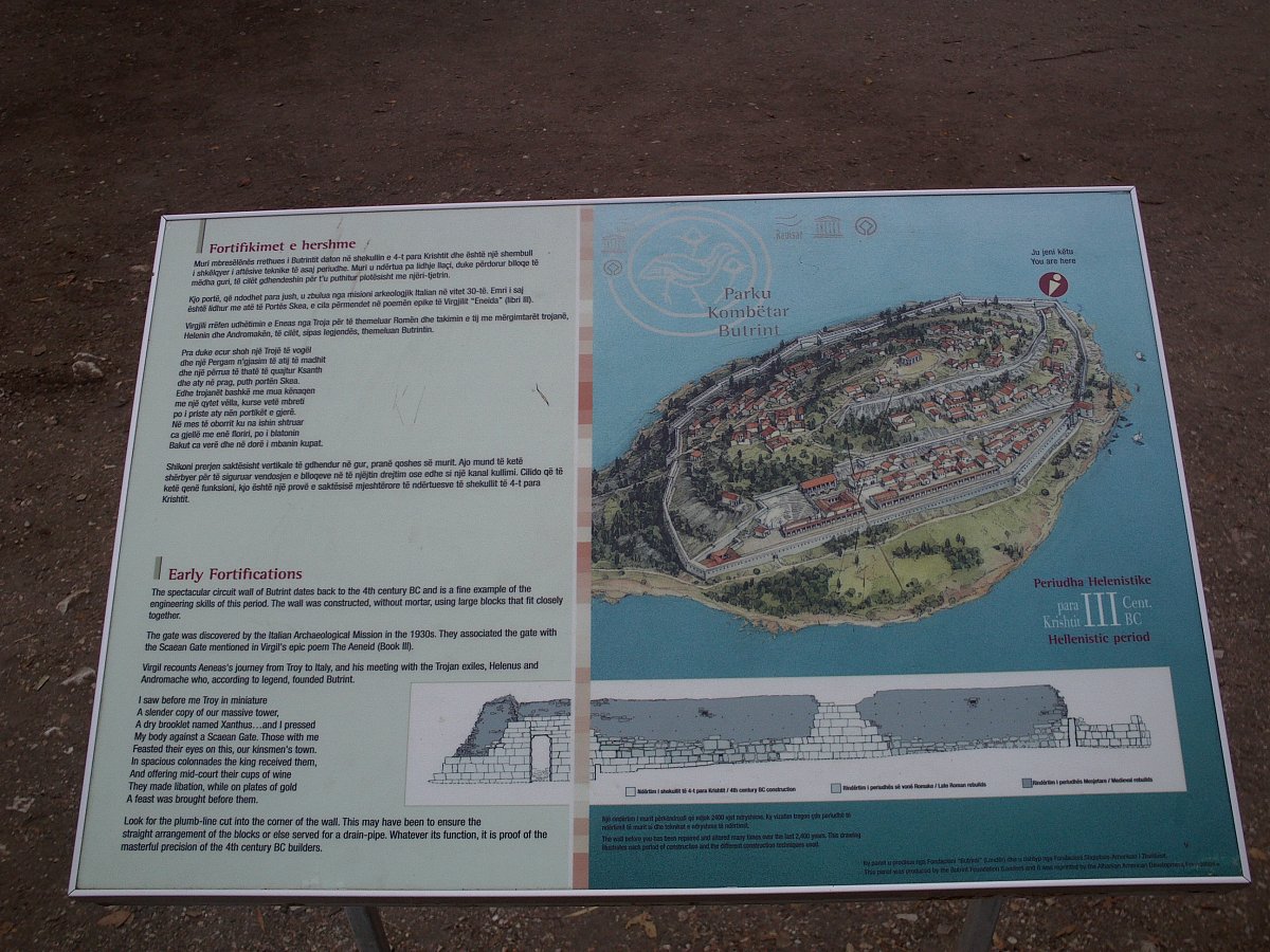 Houby s voctem. Pardon citlivým dušičkám. My z těch různě posbíraných informací nevytáhly tu jednu nejdůležitější. Ano, je to historické městečko, už ale dávno opuštěné, ve stavu rozvalin a vykopávek a zapsáno ve Světovém dědictví UNESCO. Čímž vás ale vůbec nechci od jeho návštěvy odradit, naopak. Pokud budete mít příležitost (Albánie je od nás jen jednu a půl hodiny letadlem, vlak, loď a autobusy nepočítám), rozhodně se do Butrintu vydejte. Je to tam moc hezké a zajímavé. Navíc si zde návštěvníků velmi váží a snaží se jim vyjít vstříc. Nevím, kolik turistů z České republiky Butrint ročně navštíví, nebude jich asi moc. A přesto jsme objevily prospekt v češtině. Byly jsme tomu moc rády, protože jsme v něm našly plánek se směrem prohlídky, informace, jak se která stavba jmenuje a k čemu sloužila. Tolik Čechů jezdí ročně do Řecka, Chorvatska a jiných států a prospekty v češtině tam většinou nenajdete!