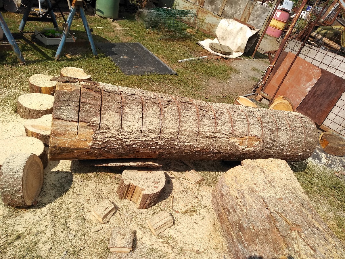 A hned něco ze života. U nás je na místě bývalého kravína, kde zbyl jen betonový plac, překladiště a výroba palivového dřeva. Se zaměstnanci se trochu znám, takže když jsem chtěl palivo na zimu, nabídli mi „macany“ s průměrem kmenu nad 40 cm ve dvoumetrových délkách. To se s běžnou „motorovkou“ musí řezat z obou stran, nebo sehnat padesátku lištu, ale musí se to pořezat na místě, kam to padne z auta, s tím nikdo už nehne. Souhlasil jsem, pilu mám, v lese jsem dělal, a tak jsem doufal, že si bez problémů poradím se zpracováním do formátu, který vyhovuje mým kamnům. Ale proč nabídli kmeny nad 40cm? Čím větší průměr, tím větší výtěžnost dřeva z kubíku na rozdíl třeba od „laťoviny“, a pro mne to bylo dost výhodné. Jak jsem se rozhlédl po jejich areálu a strojích, zjistil jsem, že mají hezkou (červenou) linku na zpracování dřeva. Řeže to na 20 až 40cm a hned to protáhne štípačkou, ale zpracuje kmeny jen do 40cm v průměru. Takže jsem dostal dřevo pro ně už nadměrné a nevhodné. Když mi to kamarád z auta sklopil na dvůr, no, to byla pohroma, jak v lese po vichřici. Nabrousil jsem pilku, dolil palivo i mazivo a šel na to. Ale uf...za chvíli bolela záda. Vše se řezalo na zemi a v předklonu, a to není už nic pro moje staré kosti. Dělal jsem z toho placky do tloušťky asi 12cm. Ty se dají odnést jednou rukou a lépe prosychají. Rovnal jsem to do figury a přikryl plachtou. Tak to bylo loni a dnes se už jen ohřívám. Tenkrát jsem si nanosil asi deset těchto placek ke krbu, ale pak jsem odjel na pár týdnů a po příjezdu bylo celkem teplo, tak se netopilo.