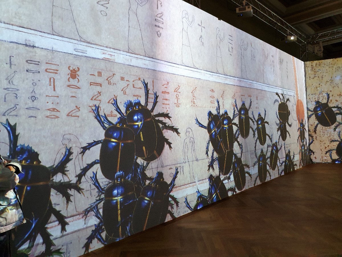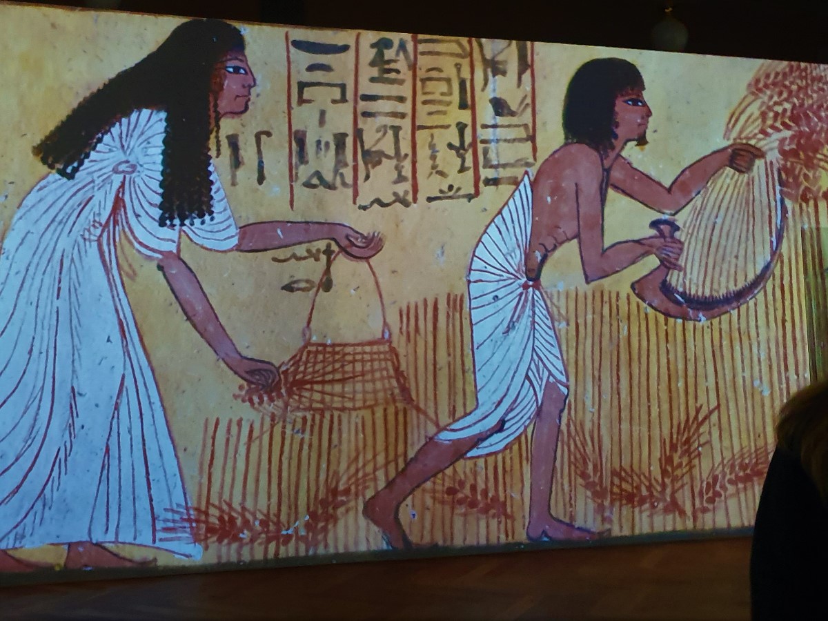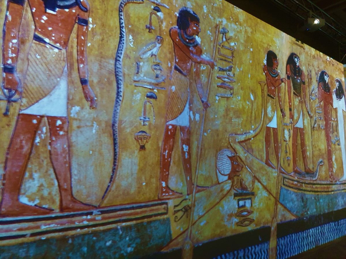 Oproti té minulé výstavě, kde byla vystavena kromě kompletně vybavené Tutanchamónovy hrobky i spousta krásných artefaktů (mne tenkrát uchvátila nejen hrobka a sarkofágová skládačka, ale i modří „vešebti“, služebníci v záhrobní říši), zde tolik artefaktů nebylo a dost jich bylo zapůjčeno z Náprstkova muzea. Nejvíc jsem ocenila nápad projekce ze života starých Egypťanů kol dokola výstavního sálu a k tomu velice dobré a zajímavě podané průvodní slovo s hudbou ve sluchátkách každého návštěvníka.