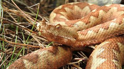 zmije růžkatá- s tou se můžeme potkat v Evropě /Rakousko, Chorvatsko, Balkán/, brzy by se mohla objevit i u nás, jak tvrdí herpetologové. Je to nejjedovatější had v Evropě. Prohlédněte si ji, zvláště její chrakteristický hrbolek na hlavě, jakýsí růžek, kterým je typická. Možná, že se někdy s ní budeme vídat i u nás....