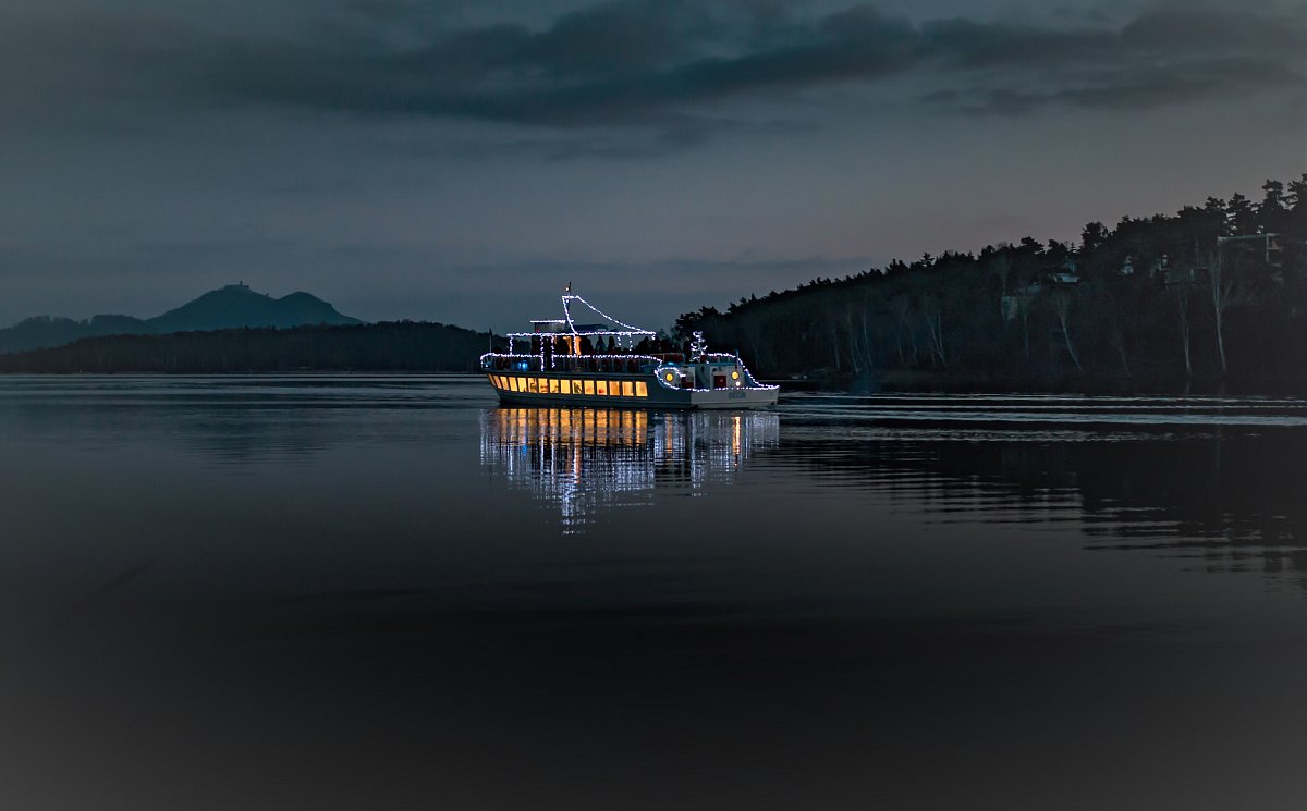 Je to opravdu nevšední zážitek, když po temné hladině klouže osvětlená vytápěná loď Máj s kapacitou 250 míst, nabízející svým hostům pohled na osvětlené Staré Splavy s honosnými prvorepublikovými vilami. V dáli se na obzoru vypíná hrad Bezděz a kolem je klid a stříbrná hladina našeho největšího jezera.