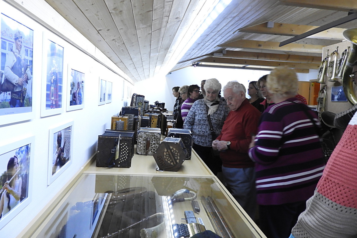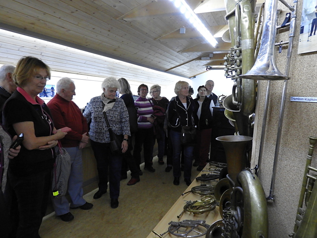 Kurz HUDEBNÍ NÁSTROJE, ač je díky lektorce velice pestrý, si chceme doplnit návštěvou hudební expozice, kterou, světe div se, máme od našeho bydliště nedaleko. Dá se říct – skoro za humny, kam nás spolehlivě doveze poněkud dýchavičný a rachotící vlak.