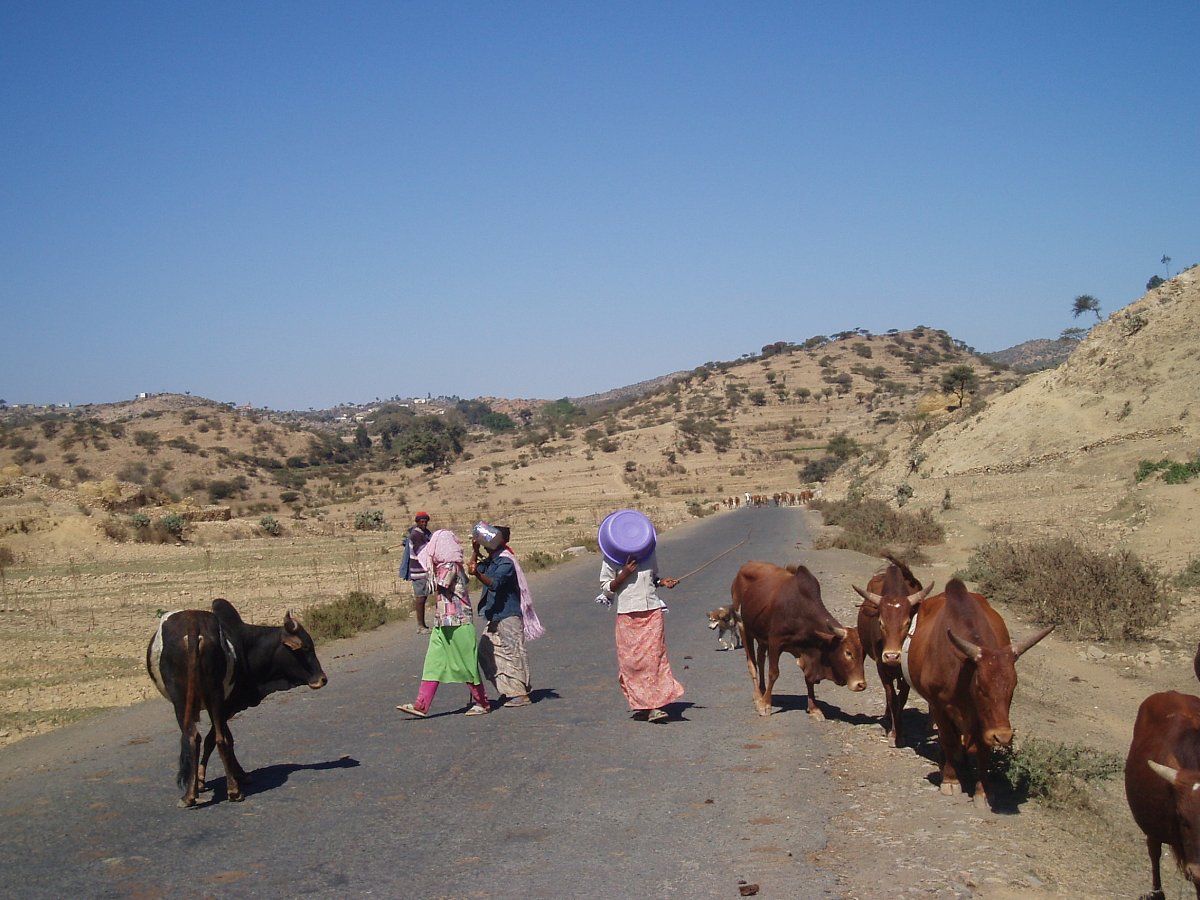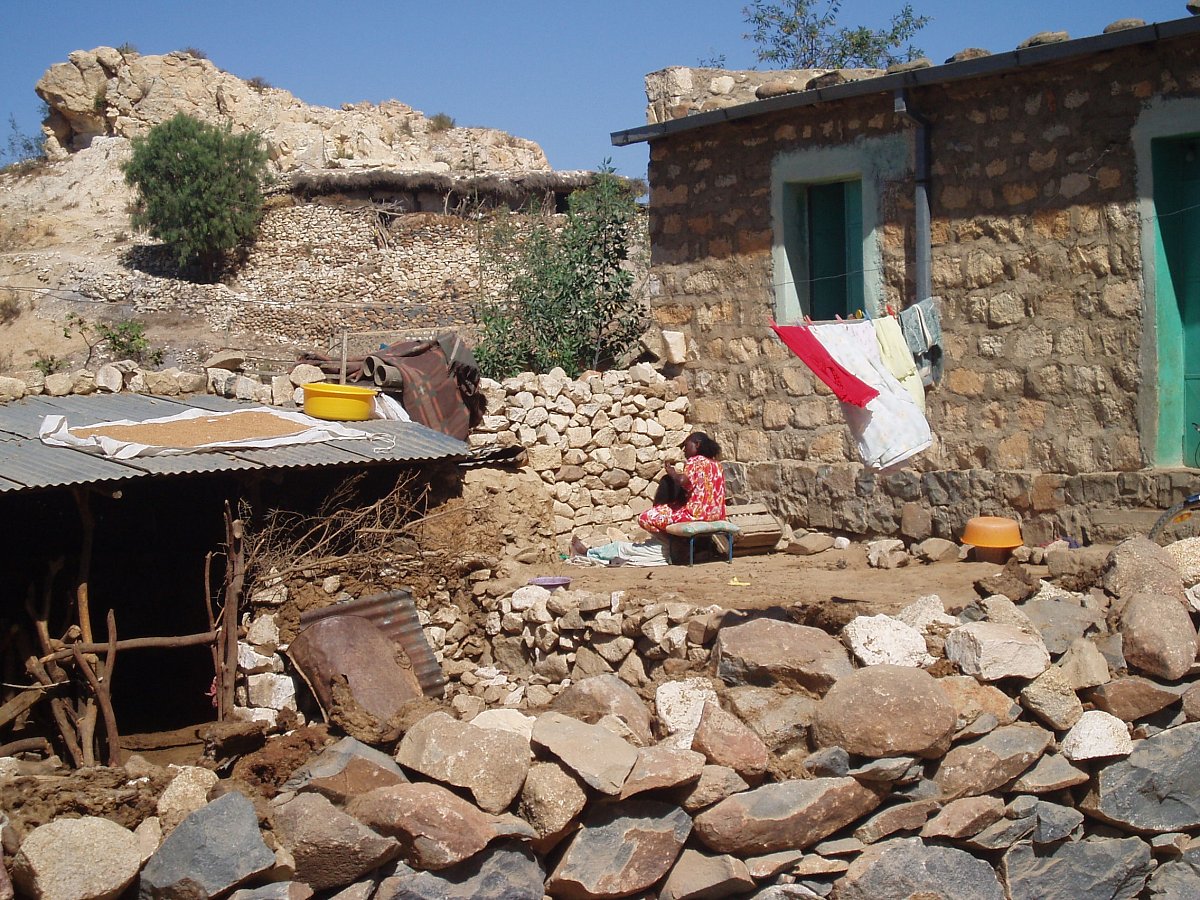 Eritrejský venkov jsme dokladněji poznali cestou k etiopské hranice, která byla v té době neprůchodná. Zaujala nás pravoslavná kaplička zabudovaná do mohutného stromu. Ve vesnici jsme pozorovali místní život – žena si barvila vlasy, děti pásly kozy nebo mlátily proso pomocí skotu.  Hladovění jsme neviděli, pouze kamióny nevládních organizací, které rozvážely pytle s potravinami.