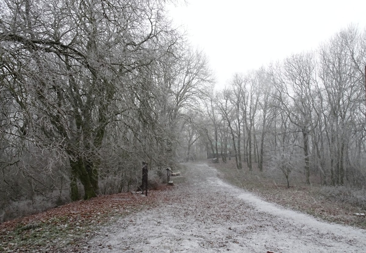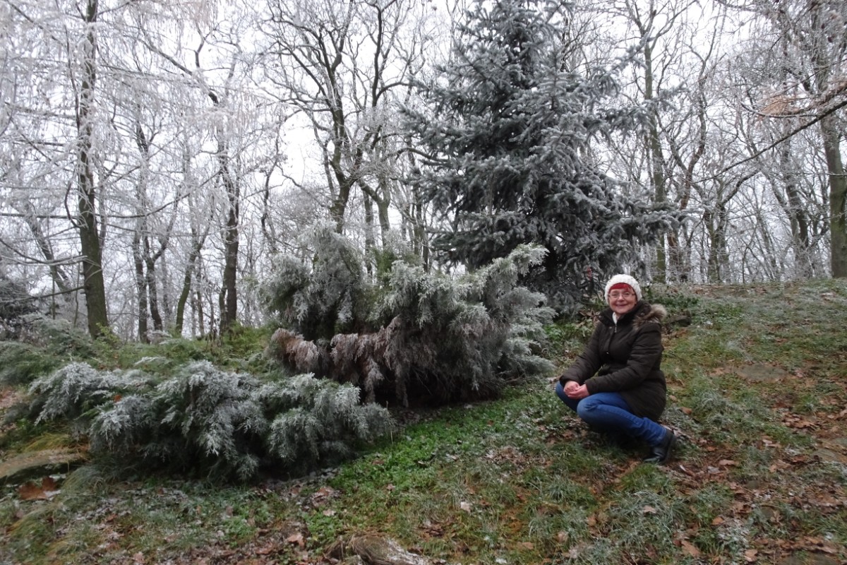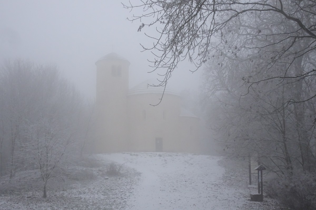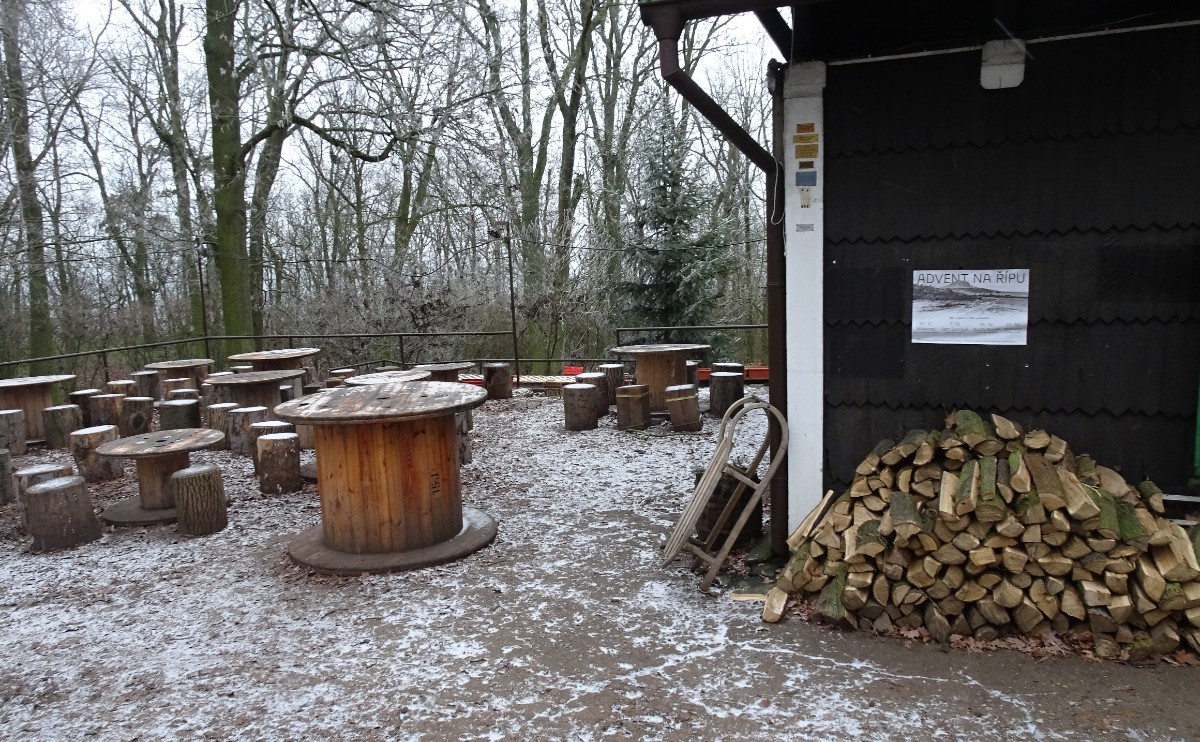 Skepticky jsem pomalu stoupala nahoru, nikde ani živáčka. Z první vyhlídky do kraje moc vidět nebylo. S nadějí, že uvidím bílou krásu, jsem se vydala dál. A opravdu, kousek před vrcholem se na cestě objevilo pár bělavých smítek. A brzy jsem si připadala jako ta Mařenka, která viděla rozsvícené okénko perníkové chaloupky. V tomto případě nejedlé, leč útulné turistické chaty. Okolní stromy skutečně zdobily bílé krystalky a paní hostinská, která dneska honičku v kuchyni neměla, mě u nich na důkaz zvěčnila. Vydala jsem se na jižní pražskou vyhlídku. Oči jsem si mohla vykoukat, ale neviděla jsem ani okolní vesnice, natož Prahu. Vracela jsem se k chatě a tu se stal zázrak. Z nebe se začaly snášet sněhové vločky. Jedna po druhé dopadaly na zem, na stromy, za můj krk. Natáhla jsem kapuci přes hlavu a vydala se ke kapličce, která se ztrácela v chumelenici. Ta mě samozřejmě nemohla odradit od vycházky na poslední vyhlídku za kapličkou - roudnickou. Můj domov však vypadal, že ho dočista spolkla nějaká meteopříšera, prostě nebyl k nalezení. Sníh padal a padal, cesta už byla docela bílá. Jásala jsem jako malá holka, dělala stopy ve sněhu, když mě vyrušilo zvonění telefonu v batůžku. Bylo čtvrt na pět a manžel se zajímal, jestli chci na Řípu přespat. Měl pravdu, ve sněhové euforii jsem trochu zapomněla na čas a na to, že se začne stmívat. Nezbylo mi než pustit se zpátky dolů. Ohlížela jsem se a viděla za sebou mystickou krajinu, stromy ztrácející se v mlžně sněhovém oparu. Ještě pár metrů a byla jsem zpátky v realitě, ze které jsem před dvěma hodinami vyšla. Po sněhu ani památky, potemnělá alej mě pohltila a vrátila zpět do běžné Podřipské zimy.