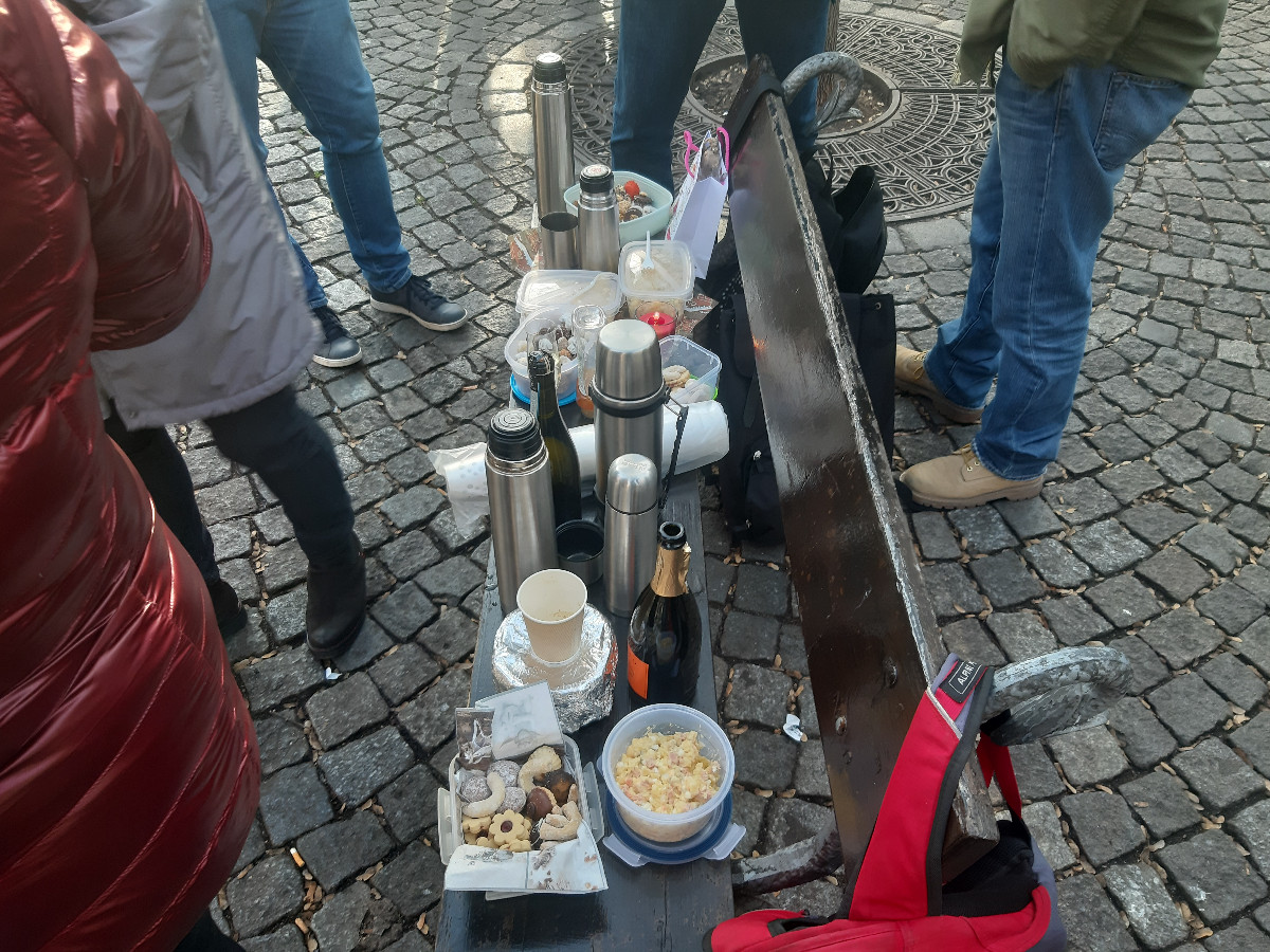 Zažil jsem štědrovečerní zázrak v centru Prahy. V den vánoc odpoledne jsme si jen tak s Helčou vyrazili na cour centrem Prahy. Prošli jsme Staroměstským náměstím, a vydali se přes Karlův most na Kampu. Sešli jsme schody z Karlova mostu a na Kampě je takové malé tržiště, a od něj je malá alej lemována lavičkami na odpočinek. Všude plno lidí, ale nikdo nikam nešel a já jen zíral. U každé lavičky stál hlouček lidí, smáli se, komunikovali, a na lavičce každý z nich donesl z domova ukázku vánočního cukroví, pamlsků, jednohubek, ale i ten mocný démon alkohol a domácí vínečko bylo k dispozici pro ně. Co lavička, to hlouček a pamlsky. Stáli tam, povídali si, mlsali, a bylo vidět, že to jsou hloučky známých lidí, a ty vedle u lavičky zas je jiný hlouček sám pro sebe.