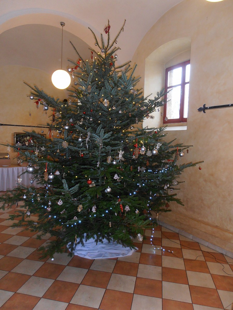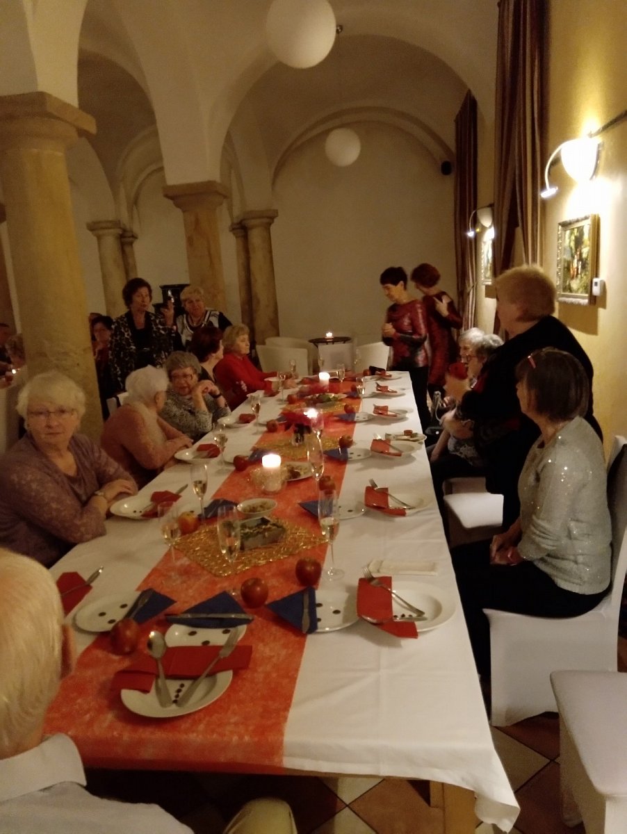 Večer při vstupu do jídelny jsme byli velice mile překvapení. Nádherně slavnostně přichystané stoly, puštěné koledy, rozsvícený stromeček a zapálené svíčky na stolech. To vše přivodilo opravdovou slavnostní atmosféru. K večeři jsme dostali hustou rybí polévku, bramborový salát a na výběr řízek z kapra nebo vepře. Nechyběl ani moučník. Rozdali jsme si malé dárečky, zavzpomínali, popovídali si. A tím večer neskončil.