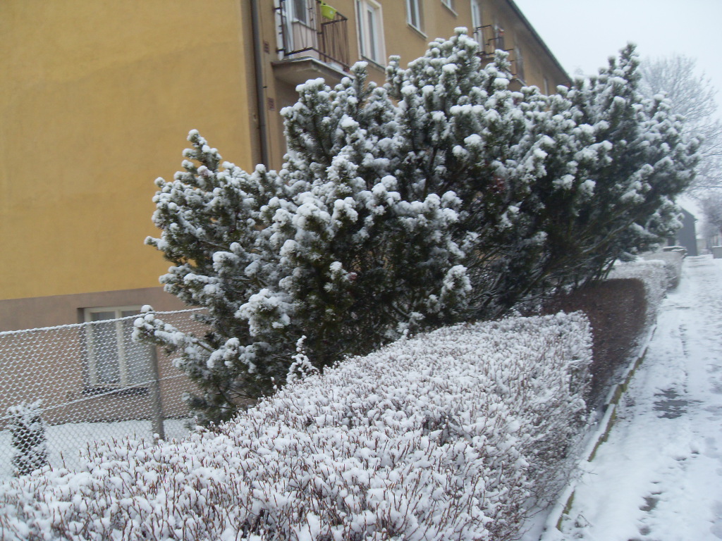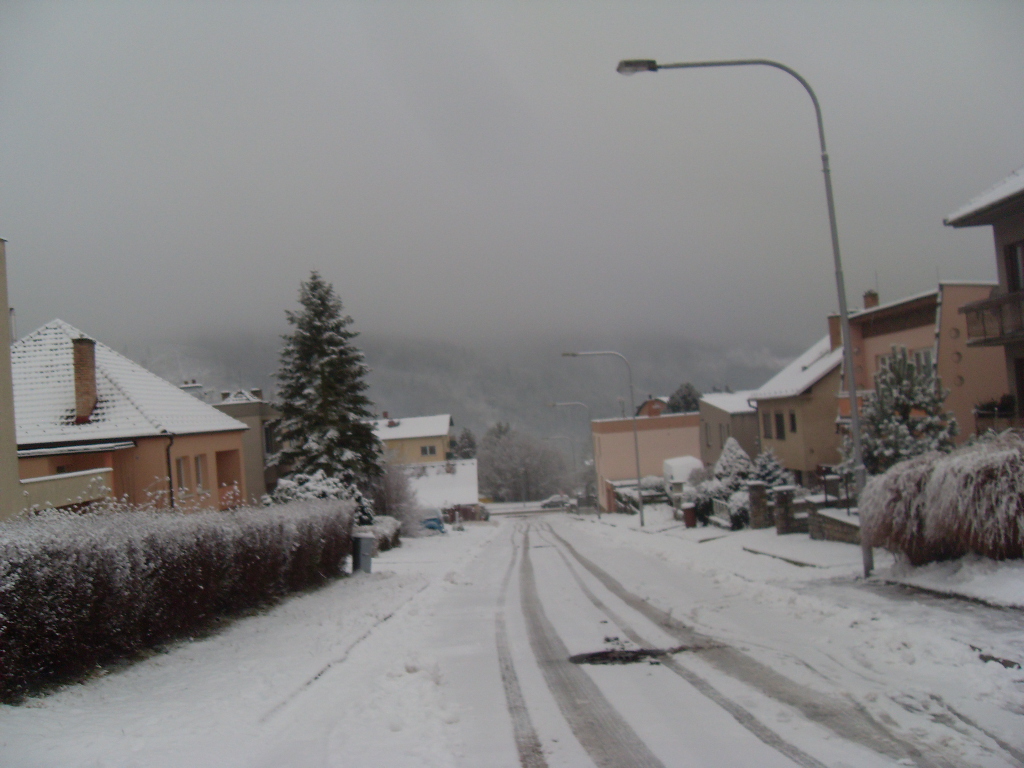 Nedokázala jsem odolat bílé nádheře a vzala si na ranní nedělní cestu i fotoaparát a pak i na včerejší cestu do Kauflandu. Dcera mi později říkala, že se byla s manželem večer naším městem projít a na jednom zasněženém travnatém svahu viděli oba bobovat děti, které si šťastně, vesele, skutečně až velmi jásavě a radostně užívaly tuto první letošní bílou nadílku.